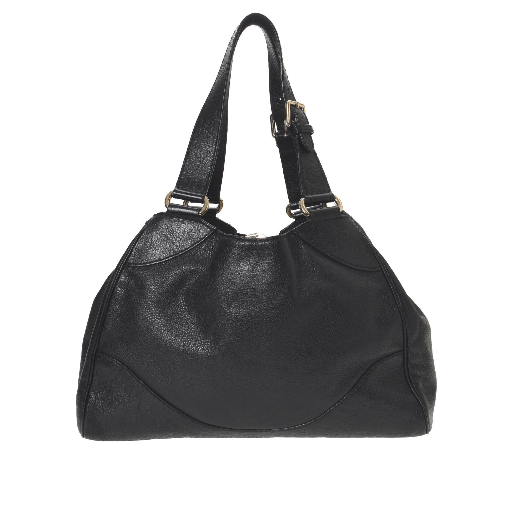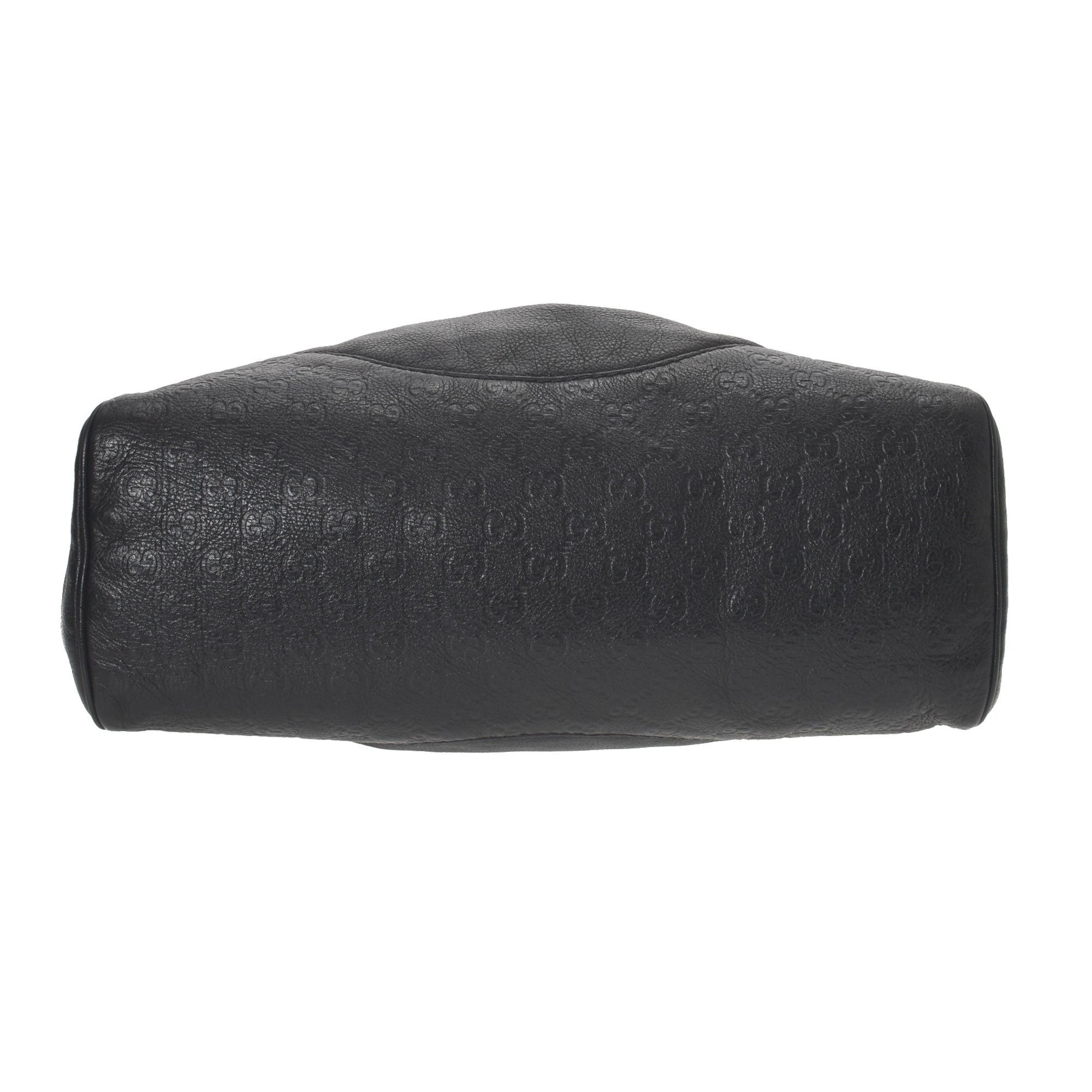 This à la mode designer shoulder bag in black is made in guccissima leather