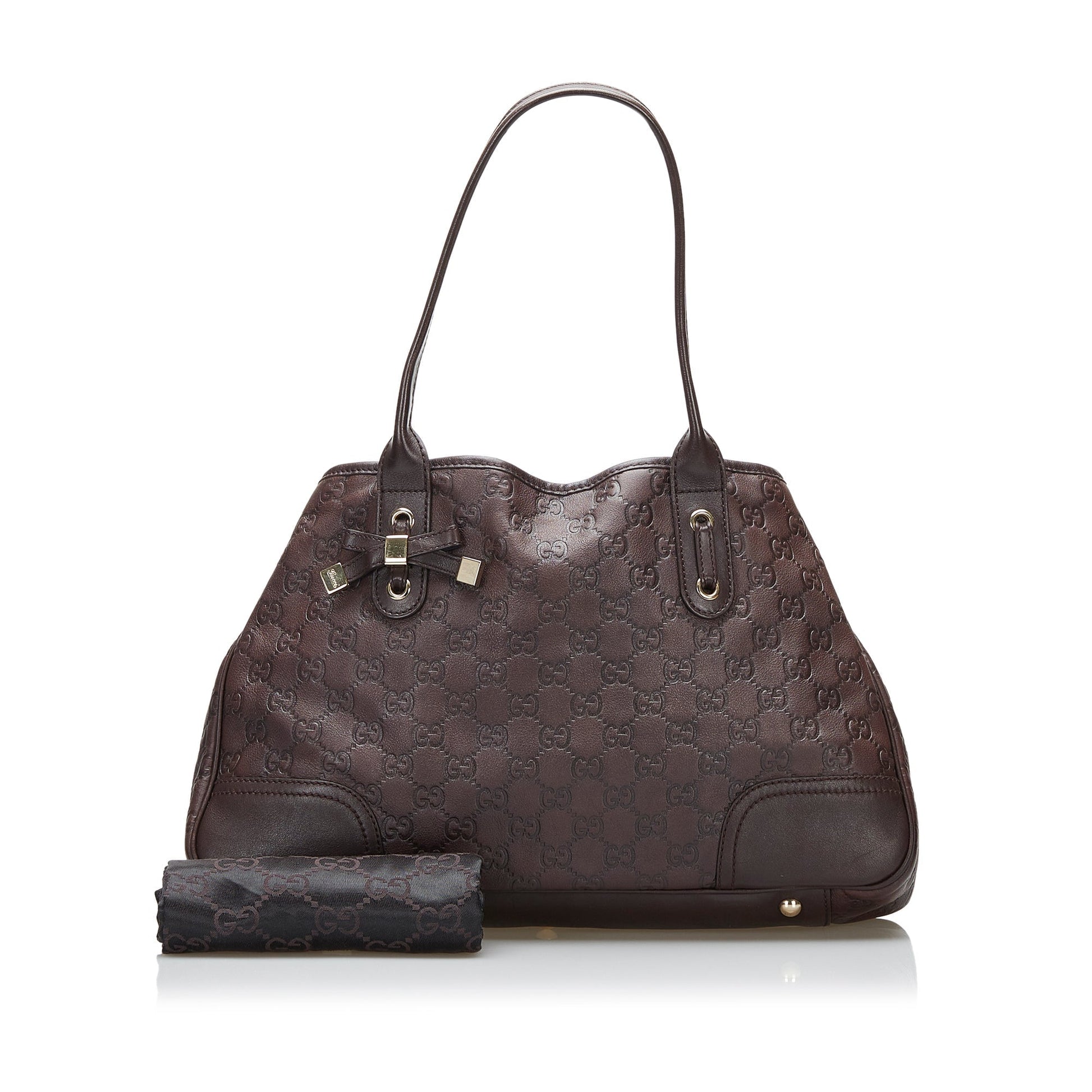 The Princy features a leather body, flat leather shoulder straps, an open top, and interior zip and slip pockets. Comes with dust bag