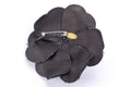 ??Chanel Camellia Brooch in black color. Includes faux black stem on the back connected to the silver detailed pin. The back also has a golden badge with the name of brand and place of creation engraved. Is in good condition. Item comes with original box.