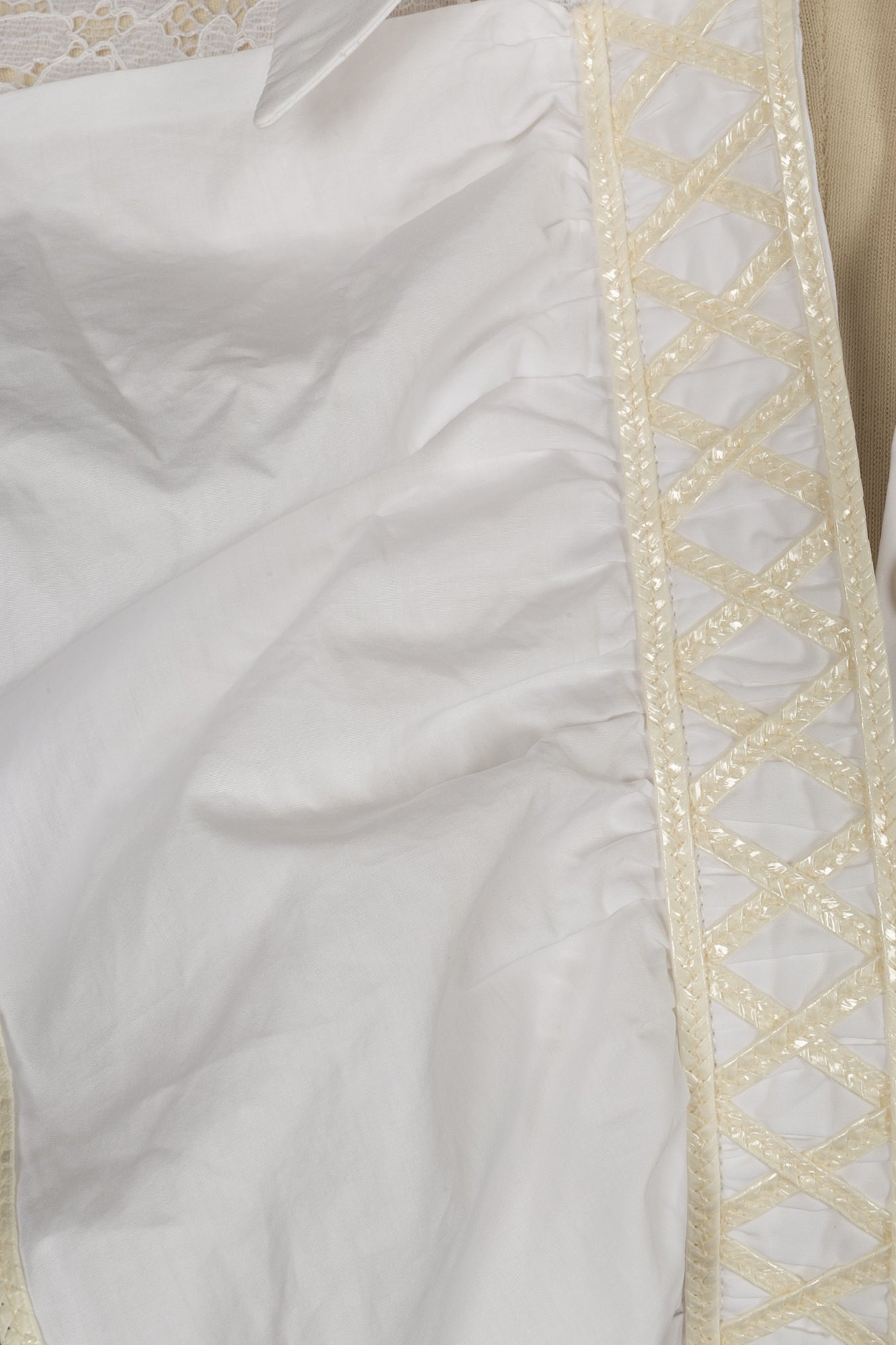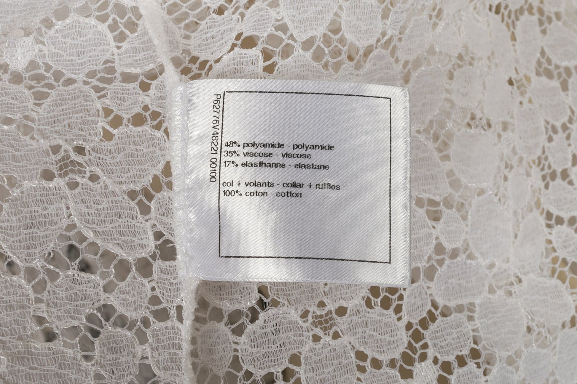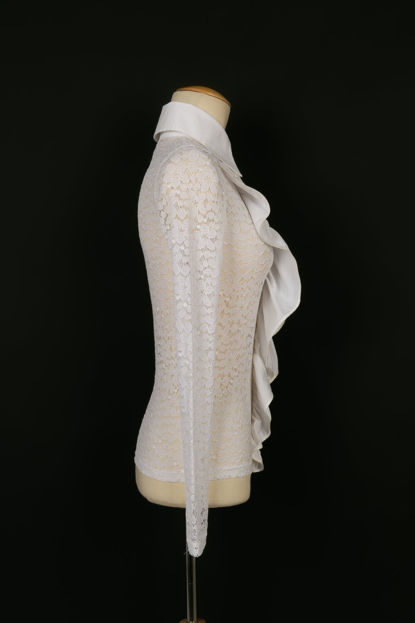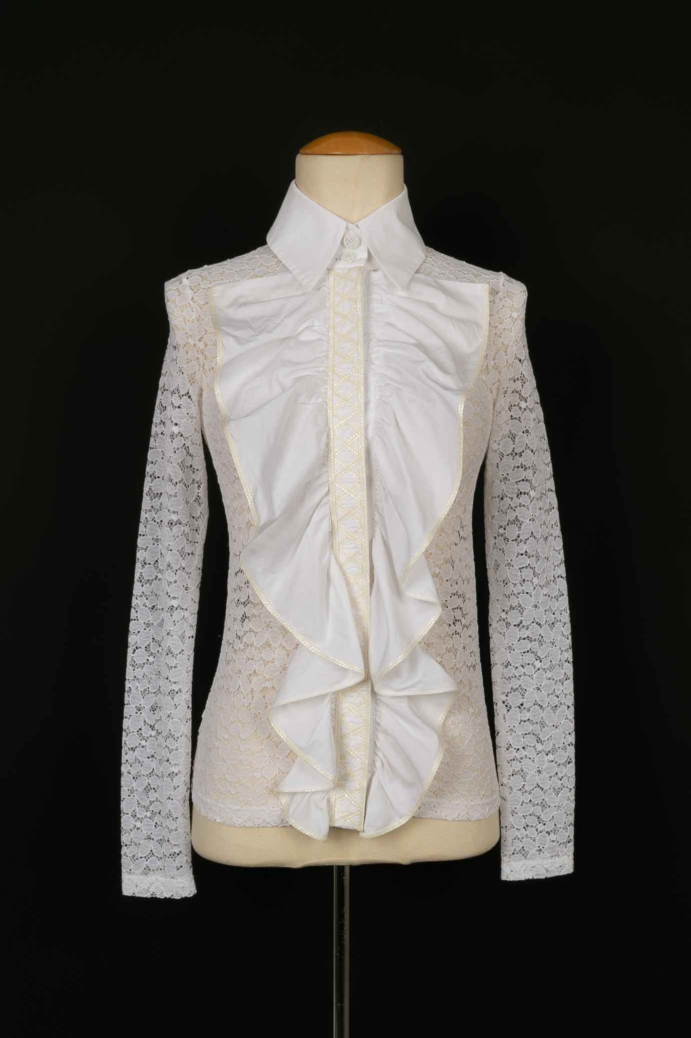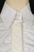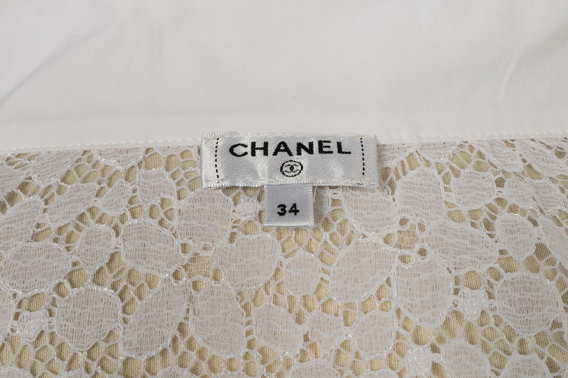 CHANEL -(Made in Italy) Chemisier en dentelle blanche et col en coton. Taille 34FR.