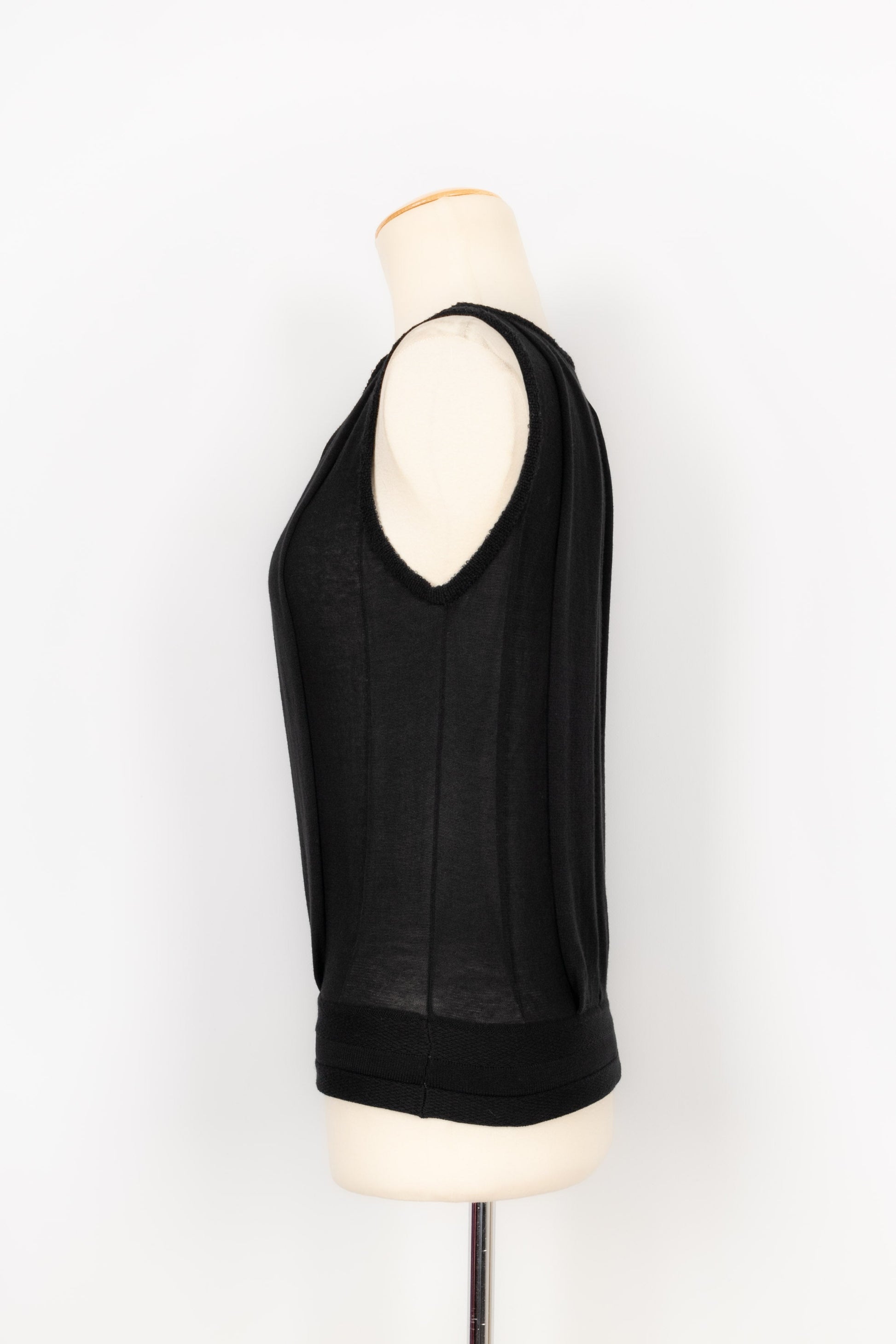 CHANEL - Haut sans manches en maille noire. Aucune �tiquette de taille ou de composition, il convient � un 36FR.