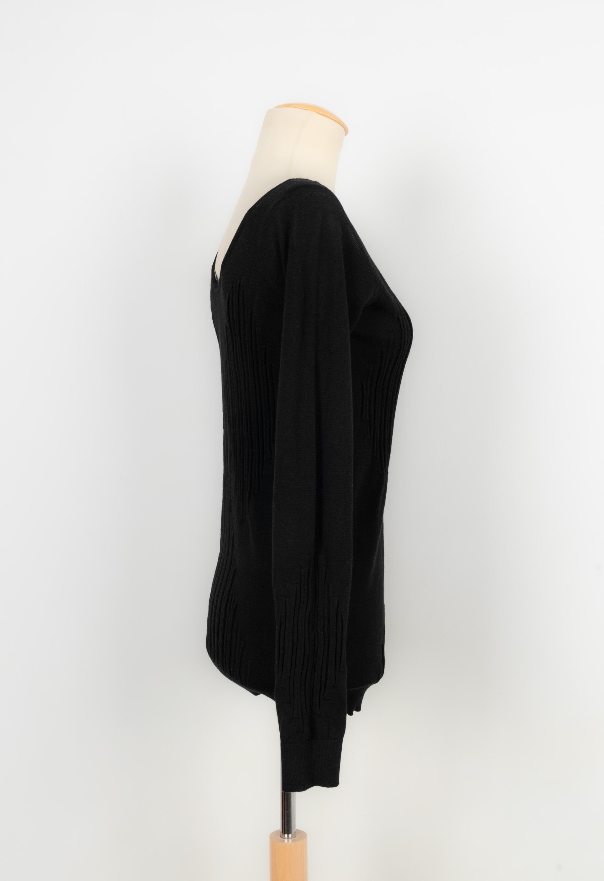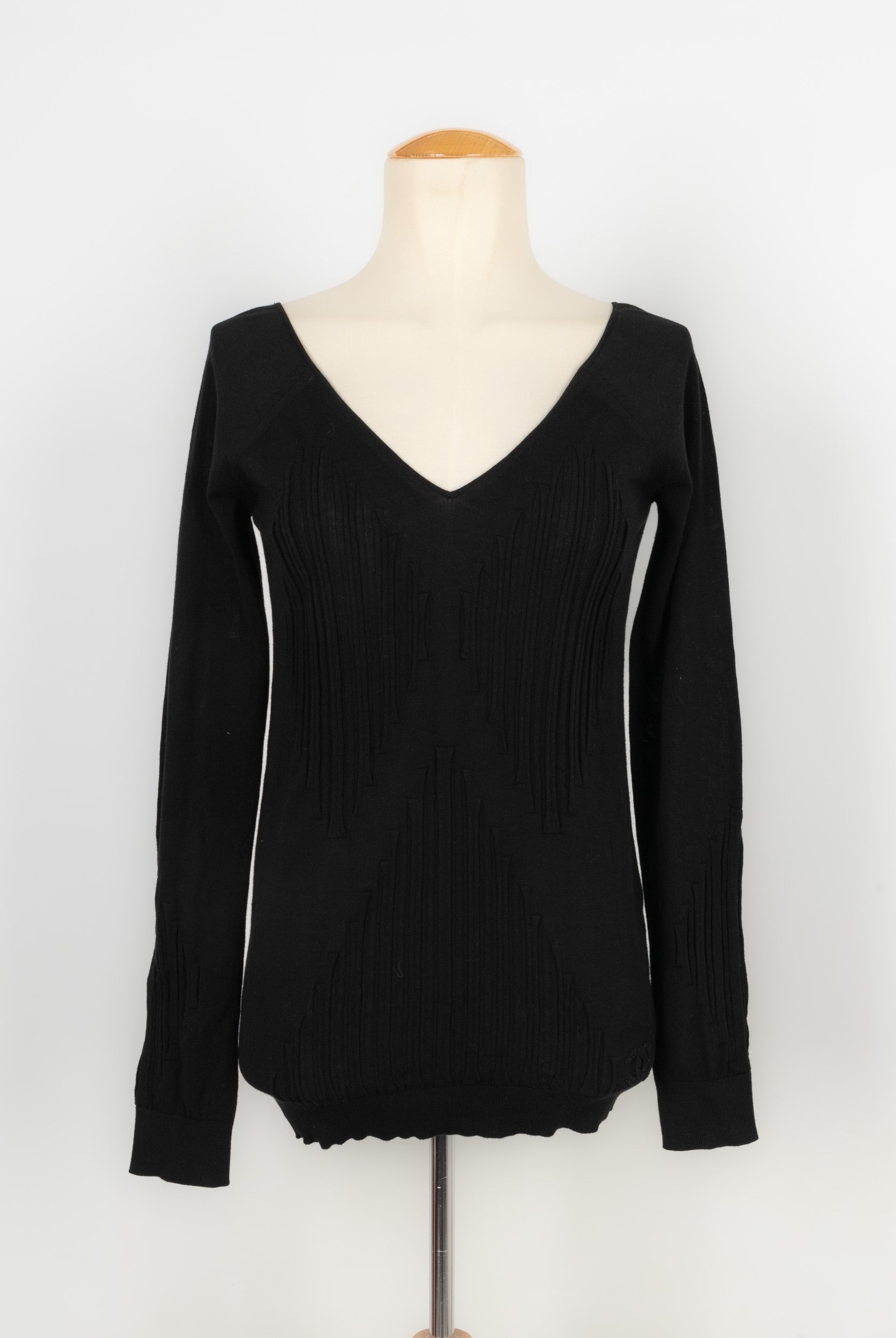 CHANEL - Haut à manches longues en coton. Taille 36FR. Etiquette de composition absente.