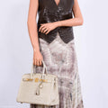 This store-fresh example is exceptional, featuring gold hardware crafted from matte Beton Alligator, a highly sought after shade that is limited by its difficulty of production. To create light tones, first the natural pigments must be stripped, a process which can easily damage lower-quality skins. One of Hermès’ highest prized exotic shades is Beton.