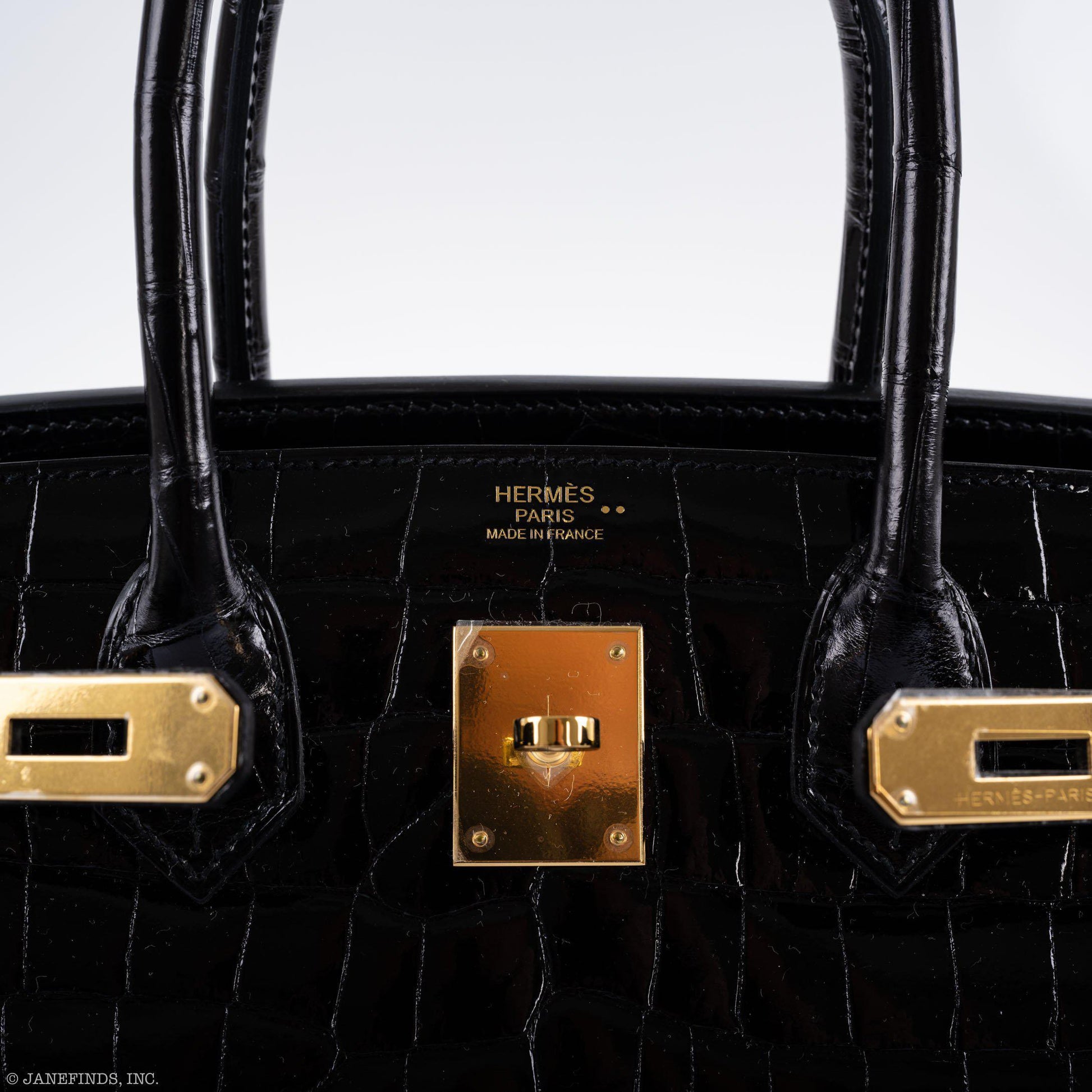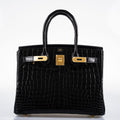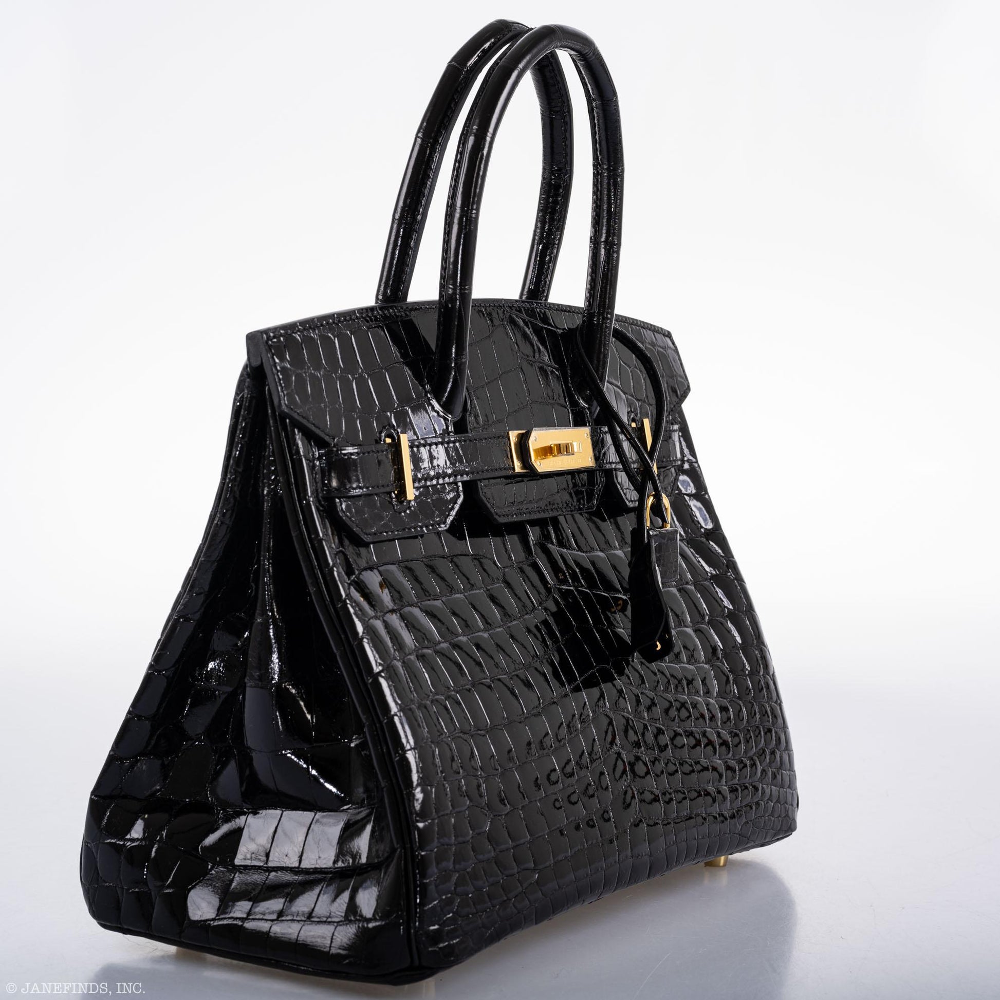 Hermès Birkin 30 Black Shiny Niloticus Crocodile Gold Hardware - 2021, Z