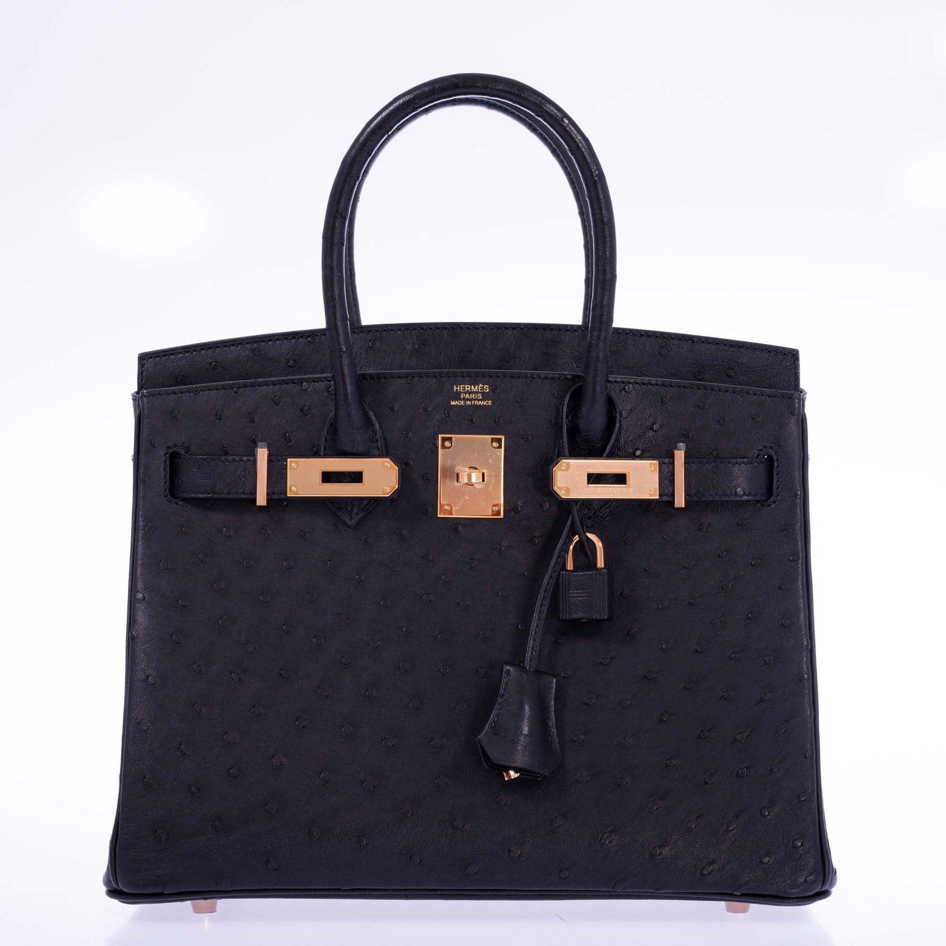Hermès Birkin 30 Black Ostrich with Rose Gold Hardware