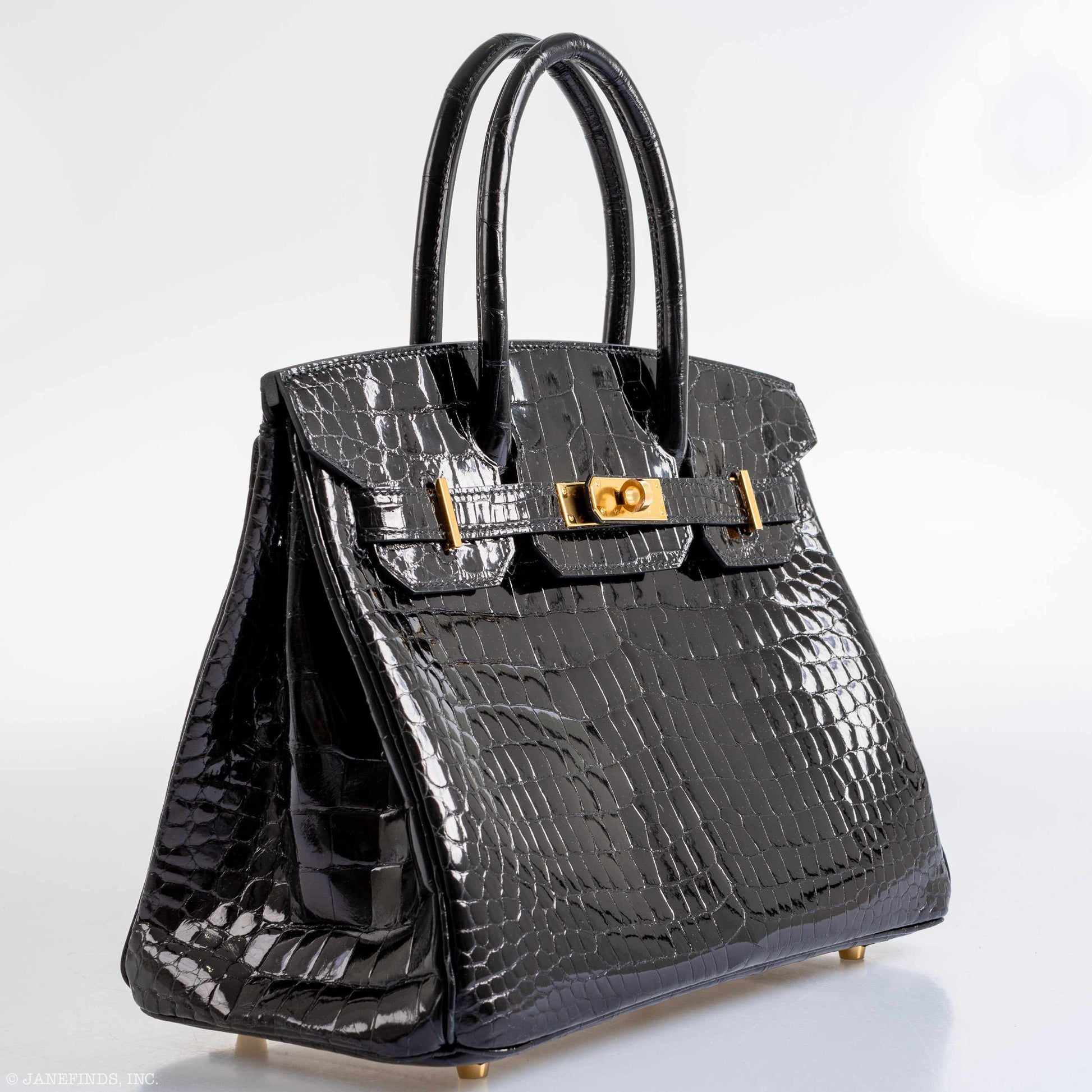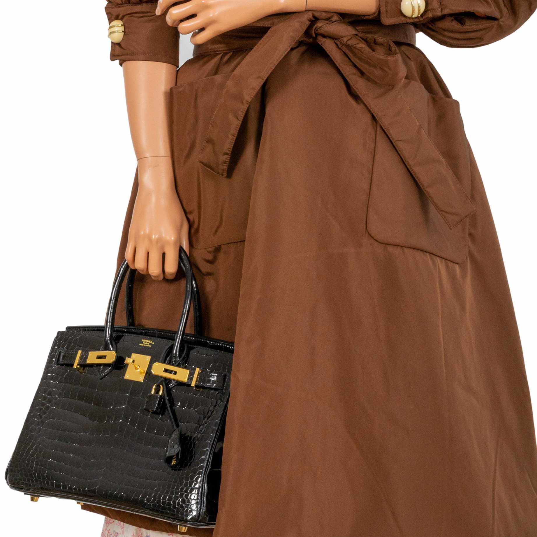 Hermès Birkin 30 Shiny Black Porosus Crocodile Gold Hardware