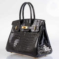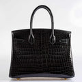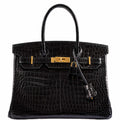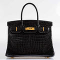 Hermès Birkin 30 Black Shiny Porosus Crocodile Gold Hardware