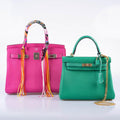 Rose Tyrien was the standout shade of pink Hermès introduced for their famous Candy Collection back in 2011. It has long been the most vibrant and neon shade of pink in Hermès’ repertoire, and actually glows bright under a blacklight, as you’ll find if you ever bring this bag to a club! A podium (a once per year custom order), this 30cm Chèvre Birkin is a pristine example that shows off the color incredibly well and the combination is exceedingly rare.