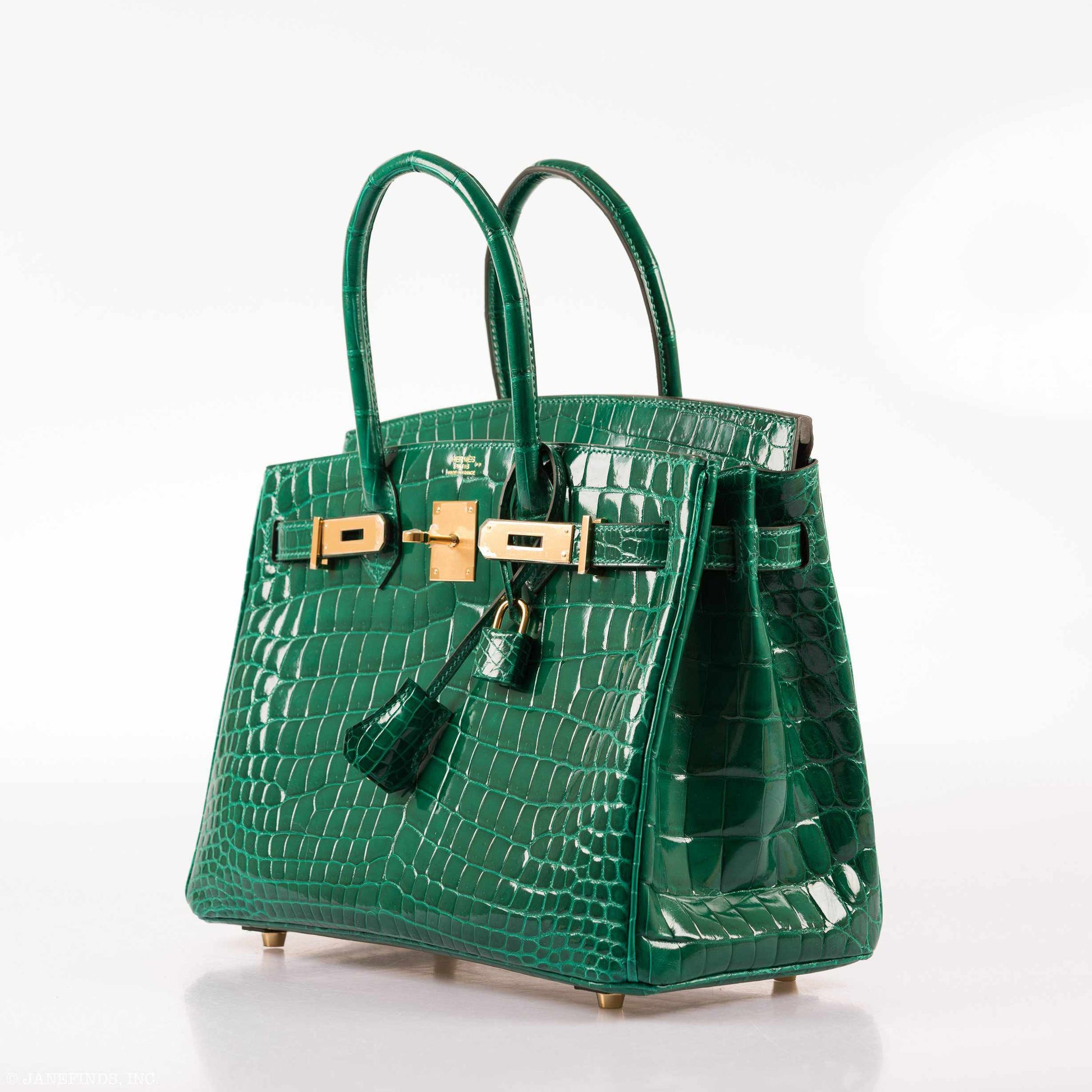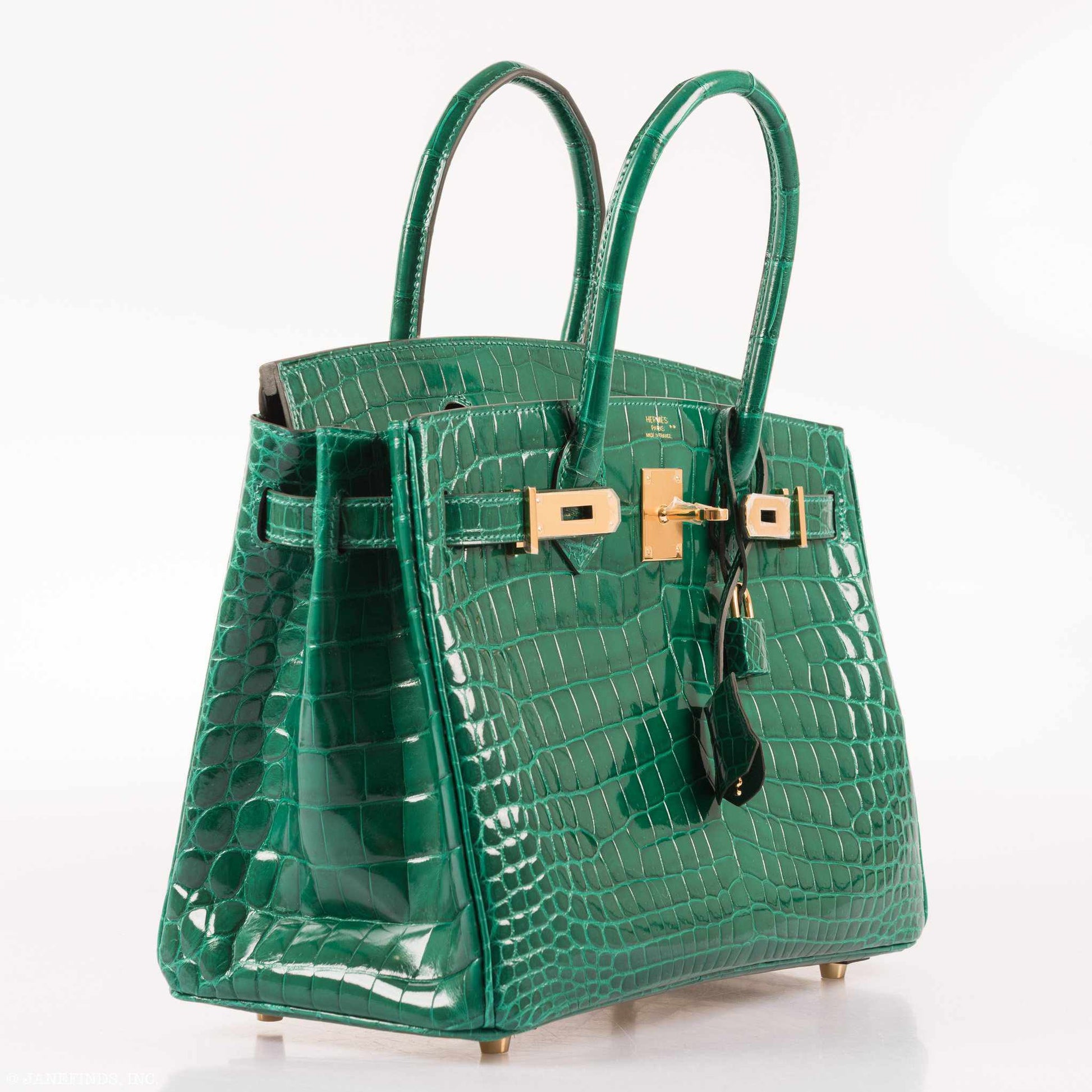 The Hermès Birkin 30cm in Emerald Green (Vert Emeraude) is a quintessential example of an "investment bag," a term denoting a high-value, sought-after accessory that retains or increases in value over time. This exquisite piece is crafted from Niloticus crocodile skin, originating from Africa and distinguished by its "Lisse Finish." This luxurious finish is achieved by polishing the spots with agate, enhancing the leather's elegance and durability. The bag’s color, a rich and rare Emerald Green, mirrors the captivating allure of the emerald stone, making it a standout piece in any collection. As a testament to its exclusivity and craftsmanship, this bag is store-fresh (never ) and comes from France, the heart of luxury fashion. Measuring 12" W x 6.25" D x 9" H, it features gold hardware, a two-strap and turn-lock closure, and comes complete with a raincoat, dust bag, clochette, lock, key, box, receipt, and documents. This Hermès Birkin is not just a fashion statement but a tangible investment in style and luxury.
