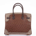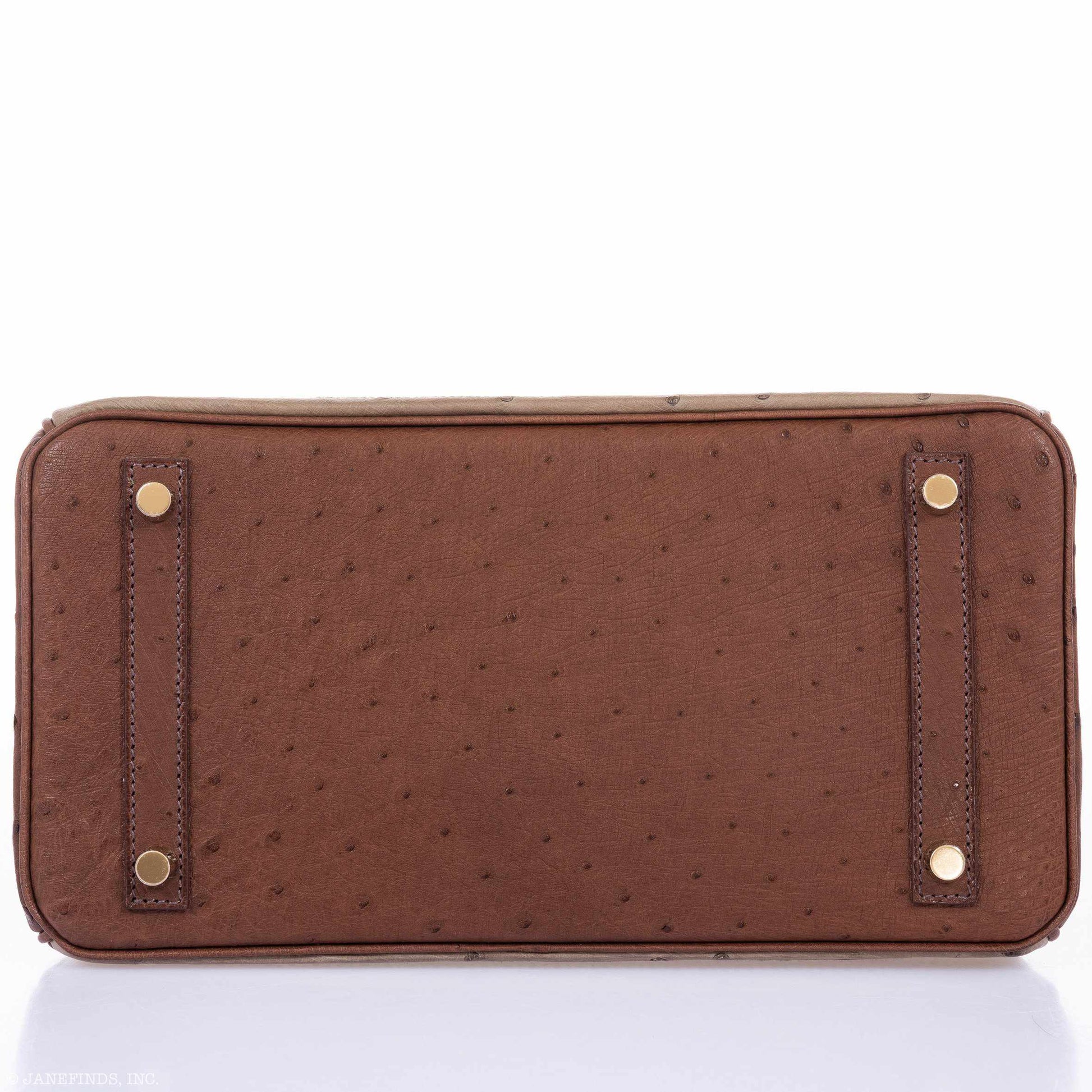 Hermès Birkin 30 Ghillies Marron Fonce, Etrusque, Mousse Ostrich Champagne Gold Hardware