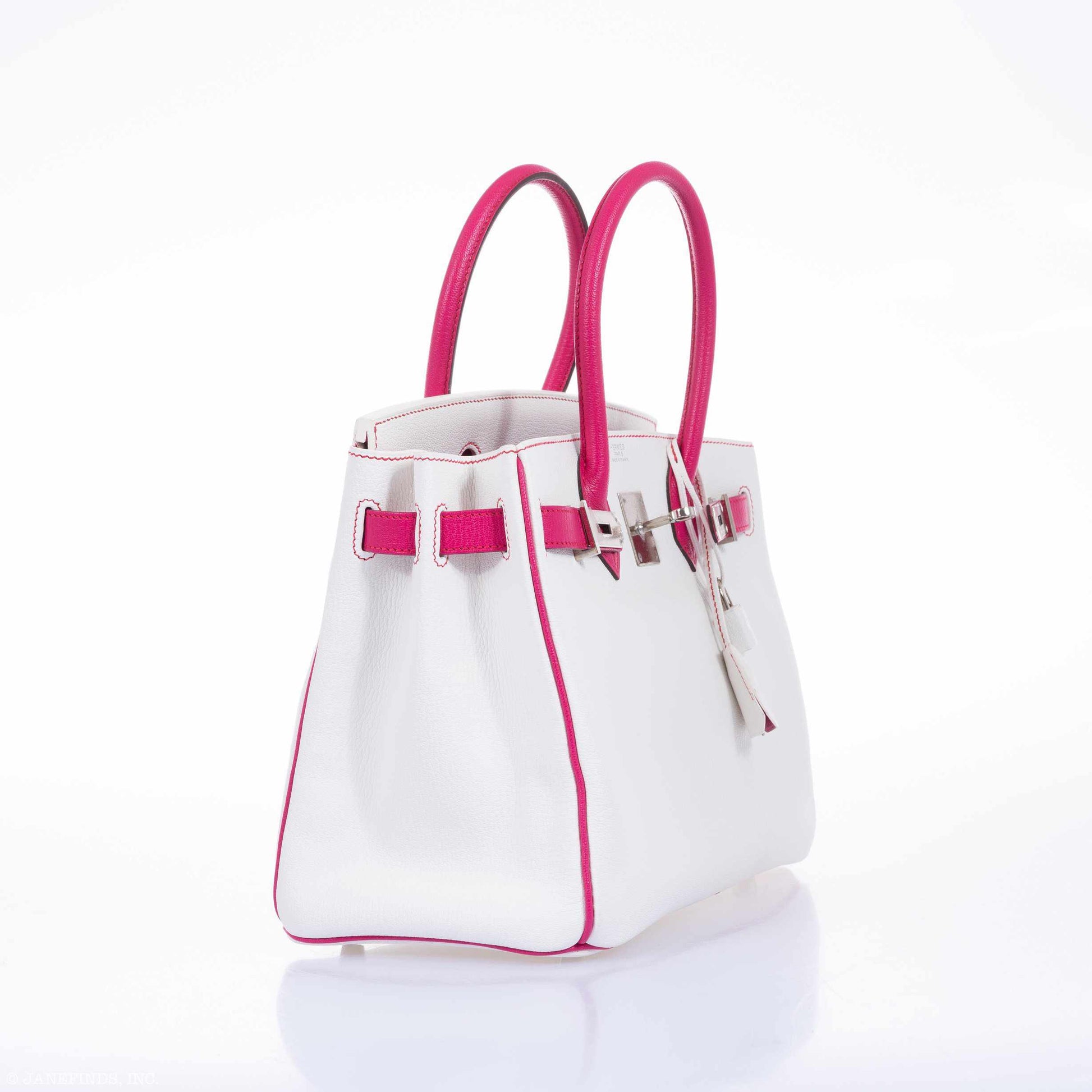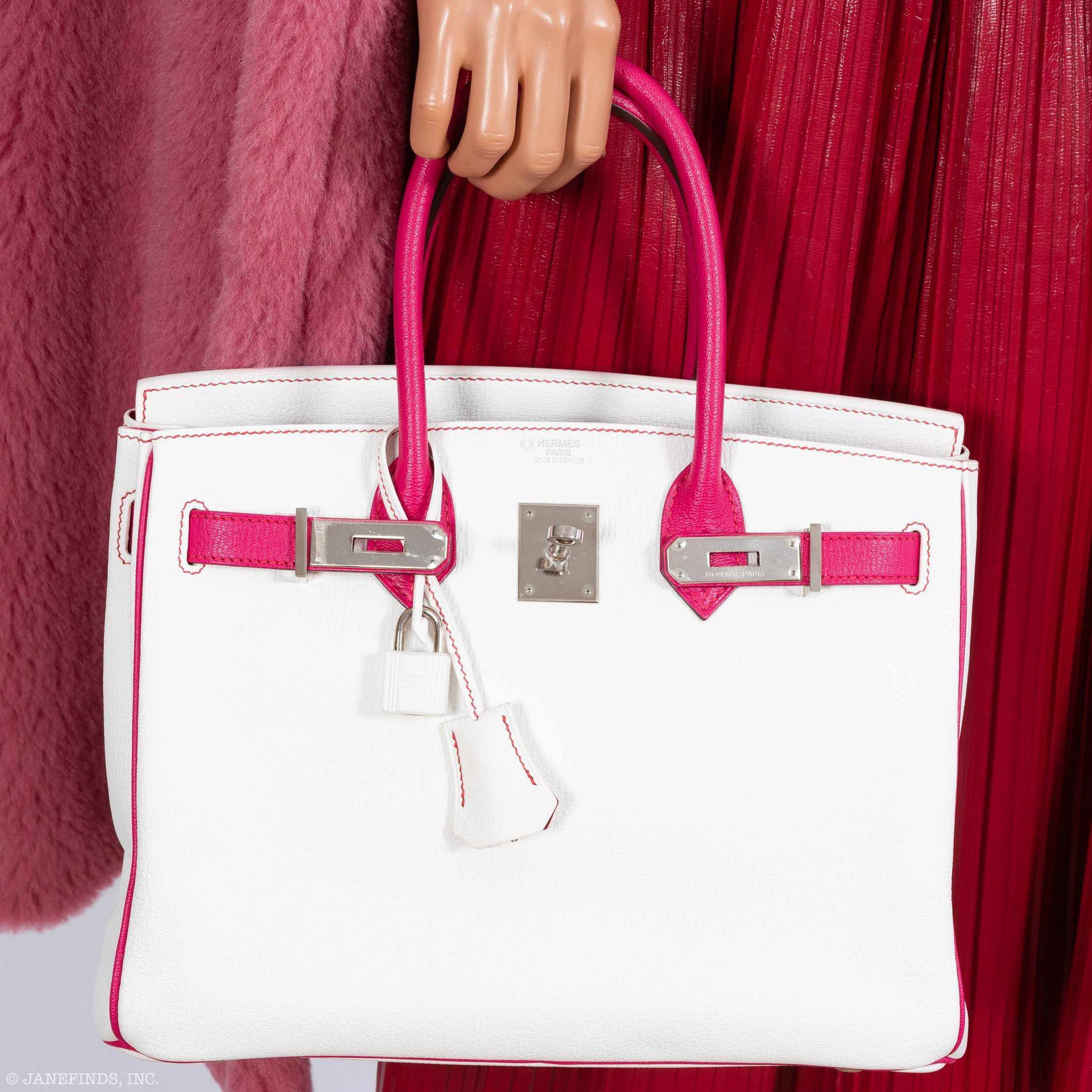 Hermès Birkin 30 HSS Bi-Color White & Fuchsia Chevre Palladium Hardware