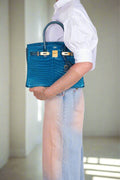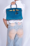 Hermès Birkin 30 HSS Blue Izmir and Blue Colvert Porosus Crocodile Brushed Gold Hardware