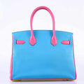 Hermès Birkin 30 HSS Rose Lipstick, Blue Aztec & Cumin Chevre Leather Brushed Gold Hardware - 2014, R Squared