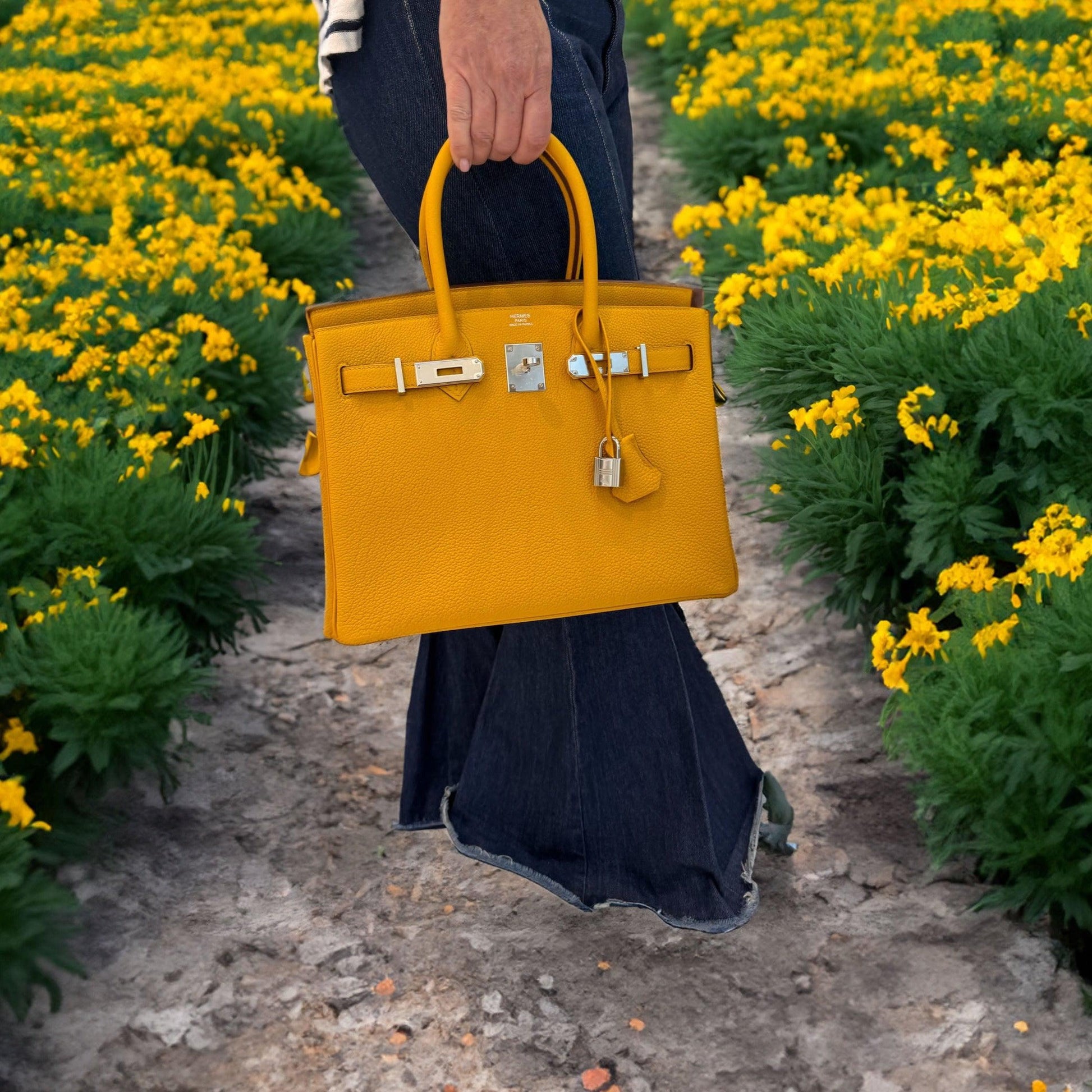 - Dress it Down: Despite its luxurious appeal, the Jaune Ambre Birkin can also bring a casual outfit to life. Pair it with a white linen dress and strappy sandals for a fresh, summery look, or with a premium knit sweater and relaxed jeans for a cozy yet chic weekend ensemble.