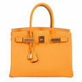 One of our favorites from Hermès this year... Jaune D'Or & Blue Marine interior. Perfect size 30cm for day to evening seamless transitions.