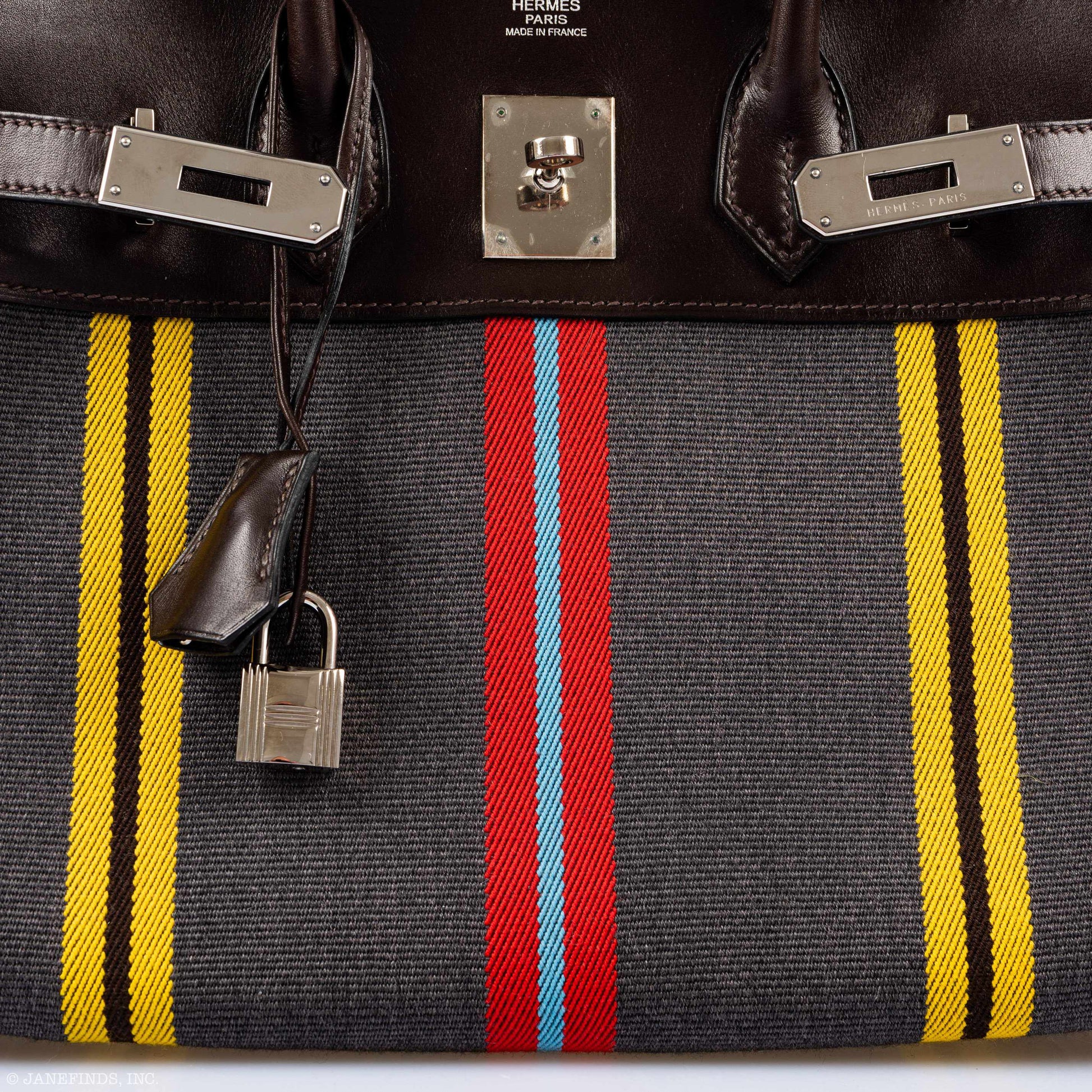 Hermès Birkin 30 Marron Fonce Calf & Colorful Wool Jumping Canvas Palladium Hardware