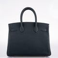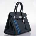 Hermès Birkin 30 Officier Vert Cyprès Togo & Bleu Zellige Stripe & Lining Palladium Hardware - 2018, C