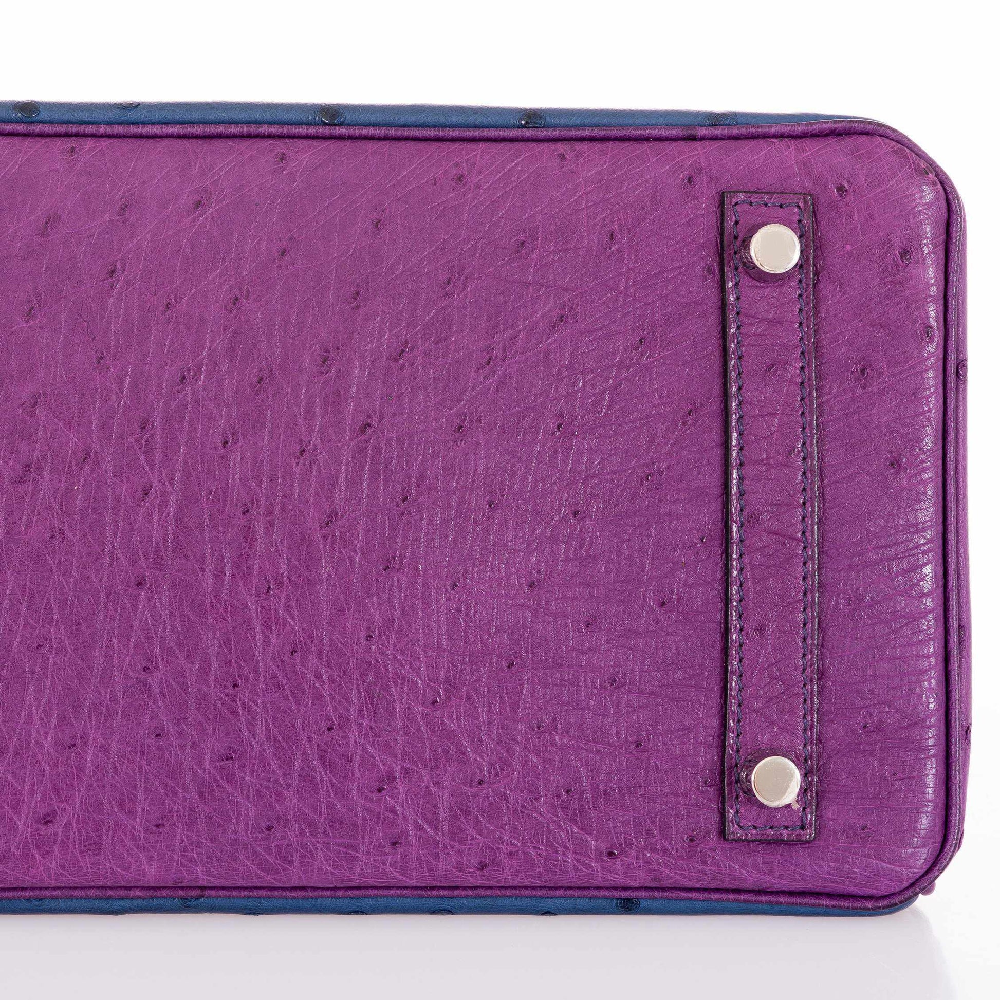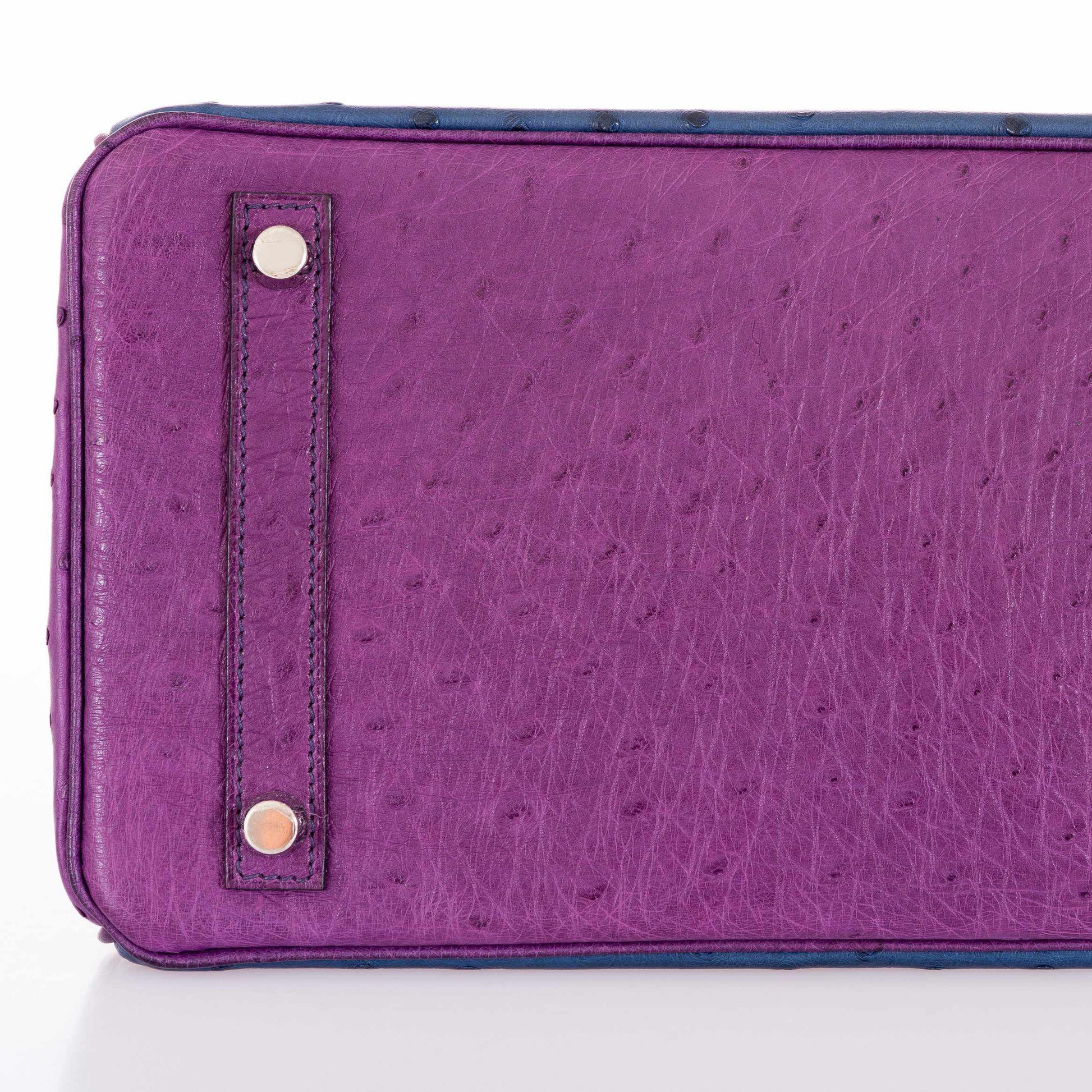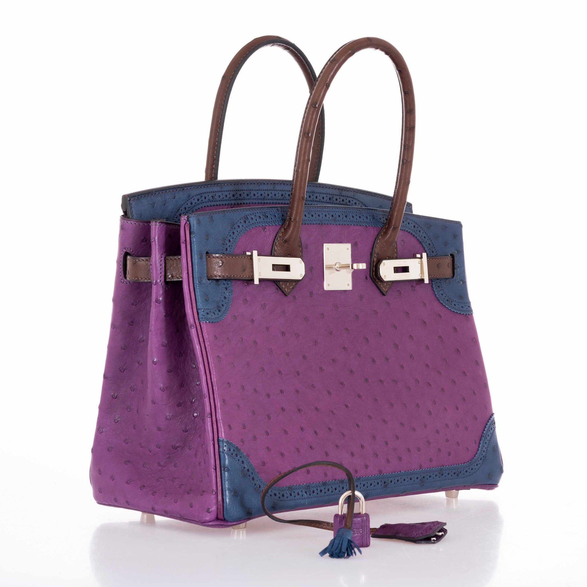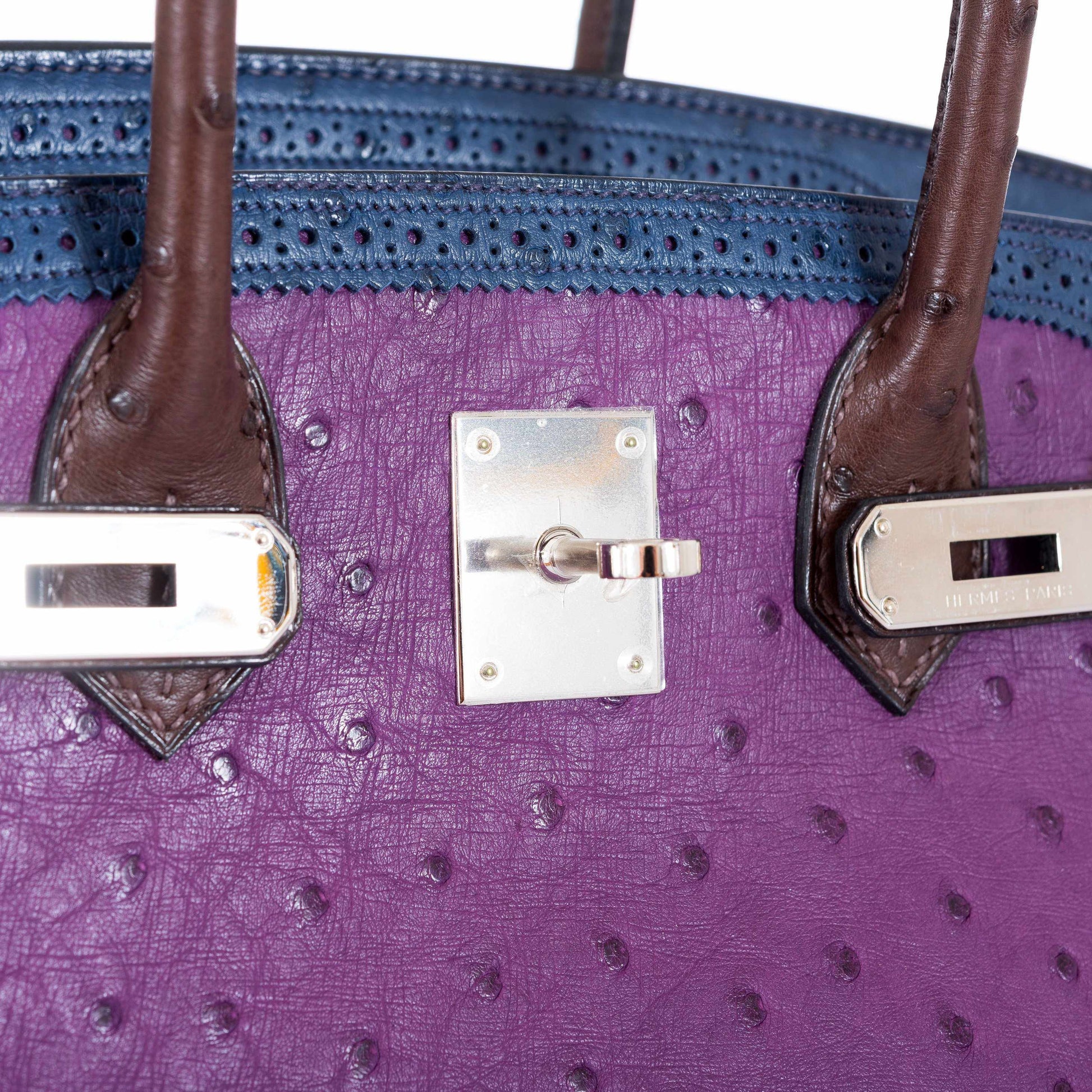 Hermès Birkin 30 Tri Color Ostrich Violine Blue De Malt And Marron Palladium Hardware