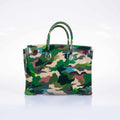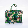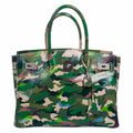 Another incredible Hermès creation from the JaneFinds Custom Shop. This is an ultra rare find, a vintage Parchment Box leather Birkin with Palladium Hardware transformed into a camouflaged work of art! Work with our designers and give new life to your vintage Hermès Kelly, or Birkin bags, make it truly unique.