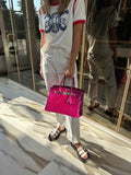 This Hermès Birkin 30 is a breathtaking creation from 2022, epitomizing luxury in its most vivid and tactile form. Porosus Crocodile, regarded as one of the most prestigious materials in the Hermès leather library, exudes an air of exotic sophistication with its distinctive scale pattern and radiant finish. Rose Pourpre, a vibrant shade that captures the essence of a blooming rose garden under the summer sun, radiates a youthful but daring sophistication. It is a color that doesn't just stand out; it sings. The gleaming palladium hardware serves as the perfect counterpoint to the vivid color, its cool silver tone providing a modern edge to the warm, dynamic hue of the bag. This handbag isn't just a purse; it's a treasure, a collector's dream, and a piece of wearable art. Owning this Hermès Birkin is a privilege, an indulgence in pure beauty that promises to become even more precious as time passes.