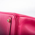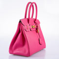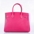 Hermès excels at producing memorable colors, with Rose Tyrien being a prime example. Part of the iconic 2011 Candy Collection, this bright pink shade has earned its own legendary reputation, particularly for its amplified vibrancy under blacklight - making it a showstopper in any club setting. The 30cm Epsom Birkin is the ideal platform for showcasing this exuberant color, accentuated by striking white stitching and glimmering gold hardware.