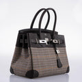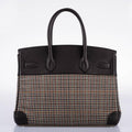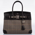 Hermès Lainage Birkin 30 Houndstooth Plaid Wool and Ebene Togo Palladium Hardware