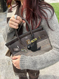 Dress it Down: For a more casual yet chic look, pair this Birkin with a high-quality cashmere sweater, dark jeans, and ankle boots. The bag's classic houndstooth pattern adds a stylish and refined element to a relaxed outfit, suitable for a weekend brunch, an informal business meeting, or a day out in the city.