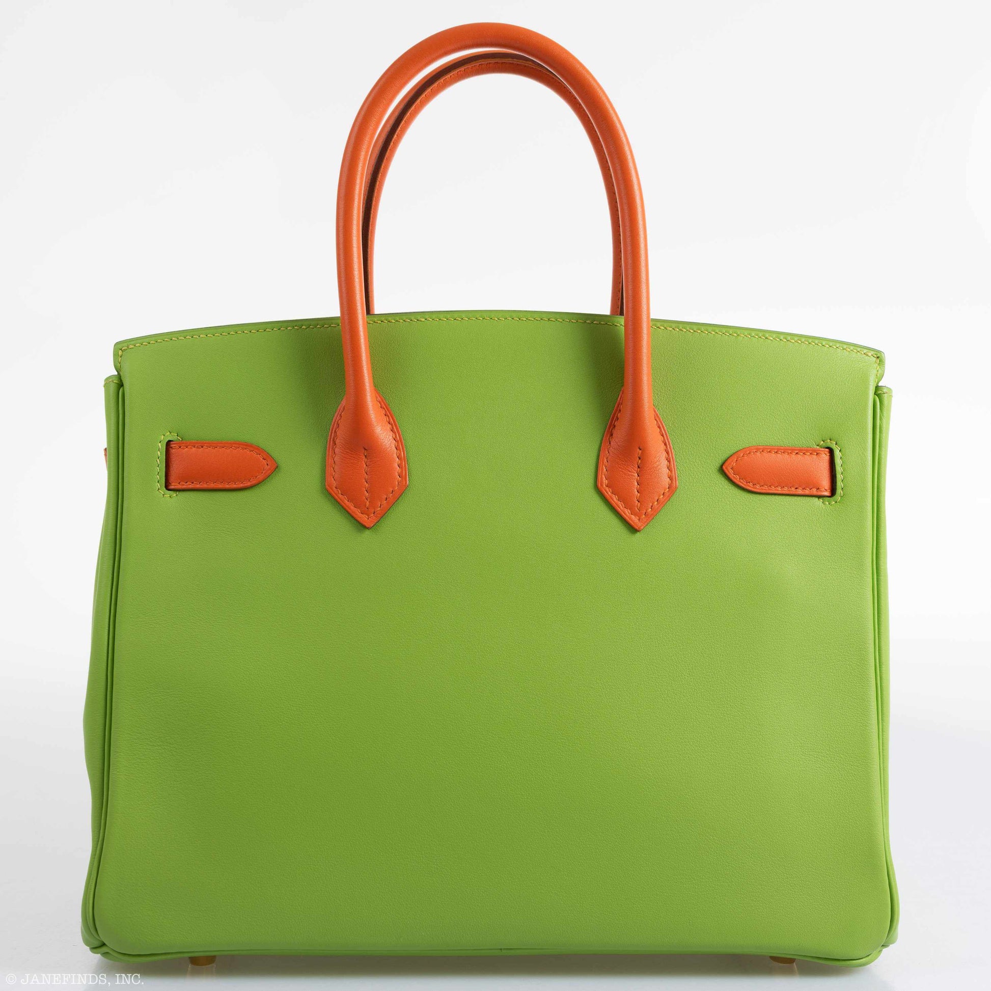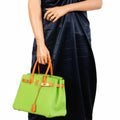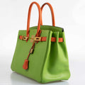 Hermès Birkin 30 Vert Cru & Orange H Gulliver Leather Gold Hardware - 1998
