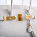 The exquisite White Clemence leather to create the iconic Birkin 30 is one of Hermes' finest materials known for its luxuriousness and durability. This type of leather, sourced from bull hide, boasts a supple and velvety texture that adds an elegant touch to the bag's appearance. The larger and more irregular grain, unique to Clemence leather compared to other Hermes leathers, adds a distinct character to each piece. Furthermore, the leather's resilience and ability to maintain its shape over time makes it the perfect choice for daily wear. This 2018 Birkin, marked with an 'C' stamp, exemplifies Hermes' impeccable craftsmanship and attention to detail. It features a classic front toggle closure, a secure clochette with a lock and two keys, and double rolled handles that provide both comfort and sophistication when carrying. Offered in pristine condition with plastic on hardware, this Birkin in Clemence leather is a timeless addition to any collection.