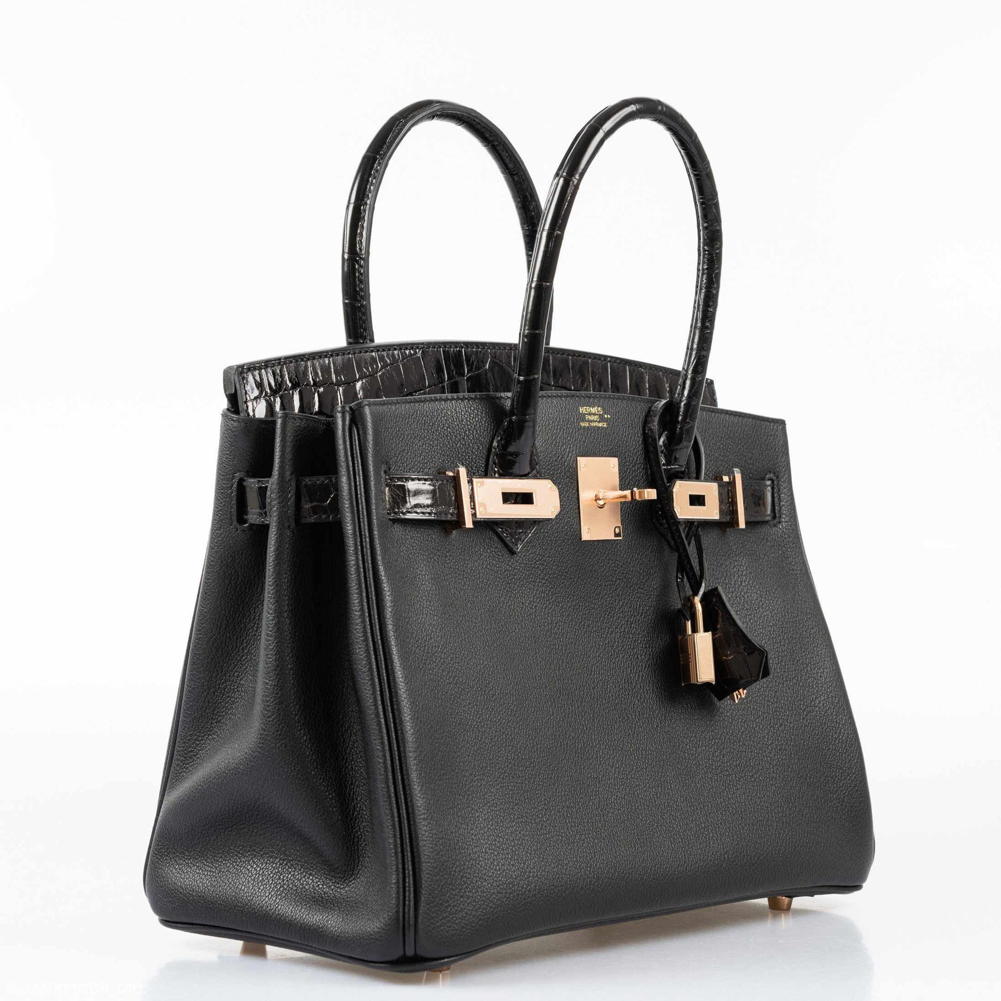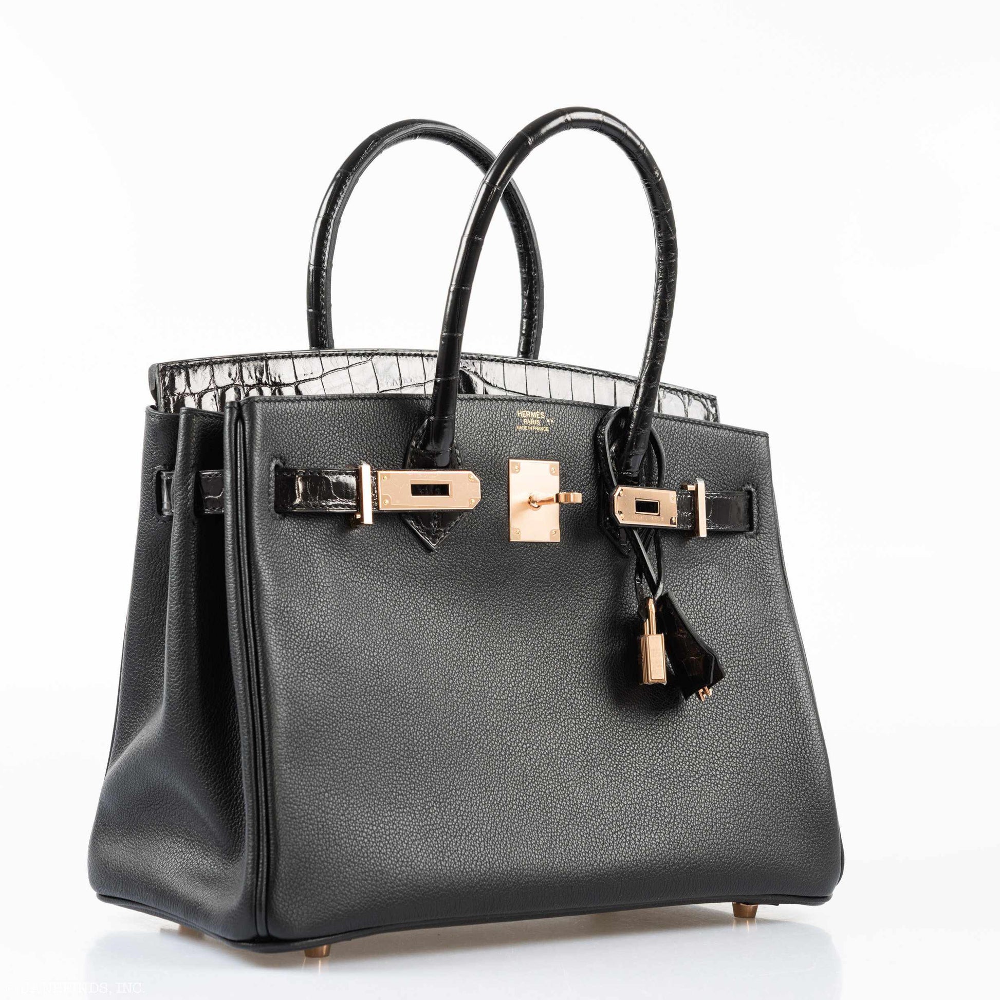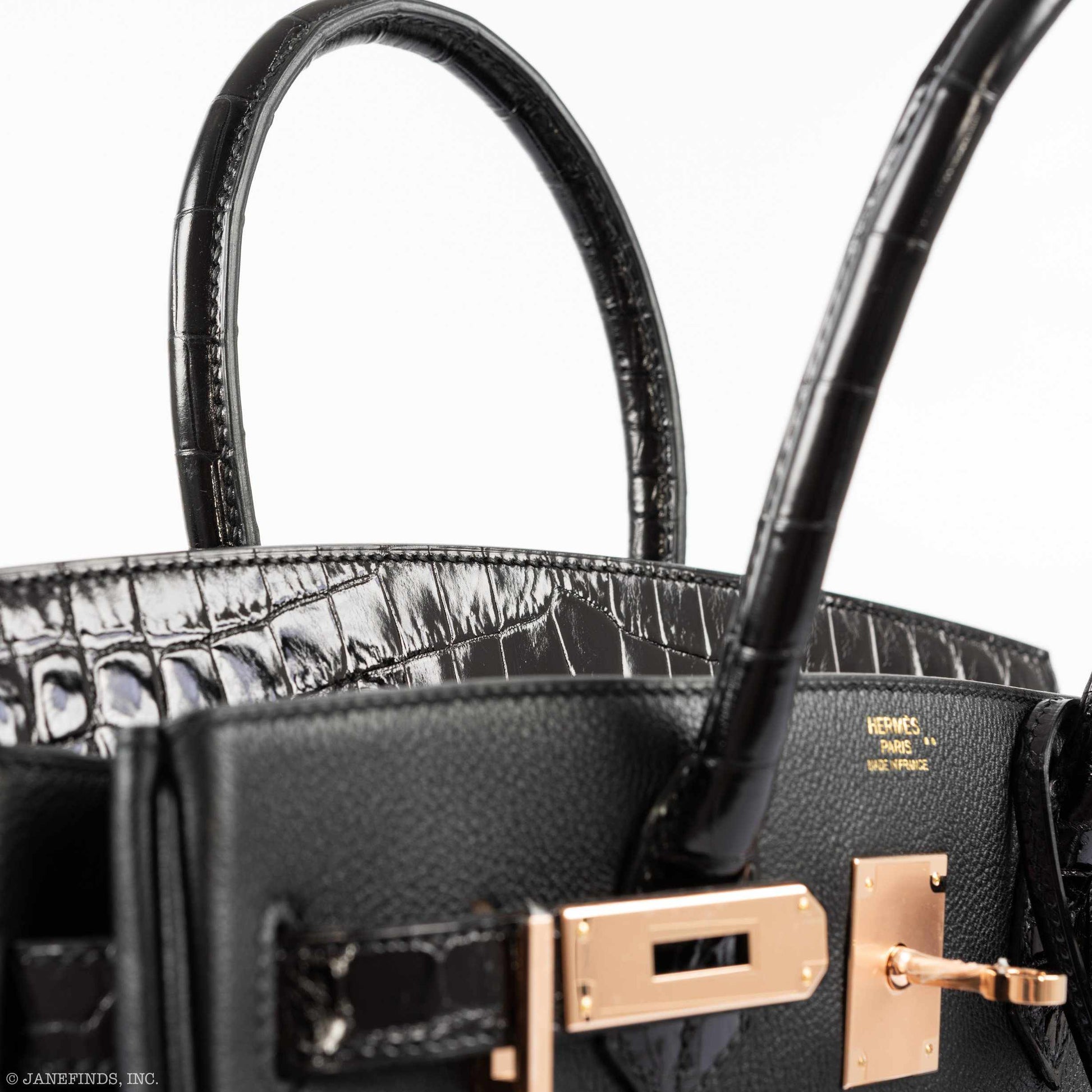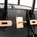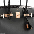Hermès Birkin Touch 30 Black Novillo & Niloticus Crocodile Rose Gold Hardware