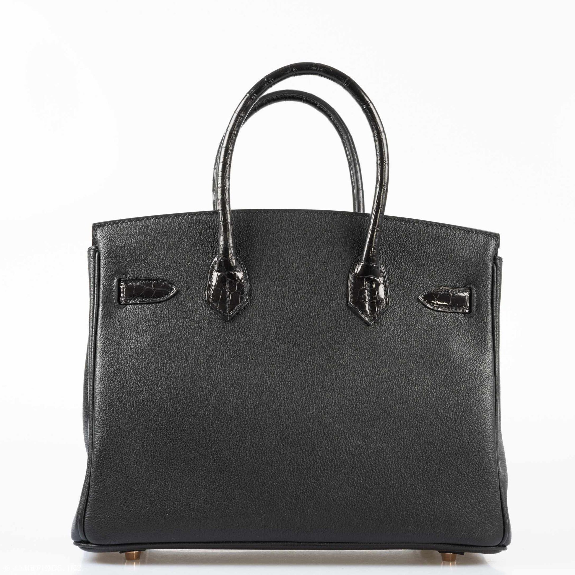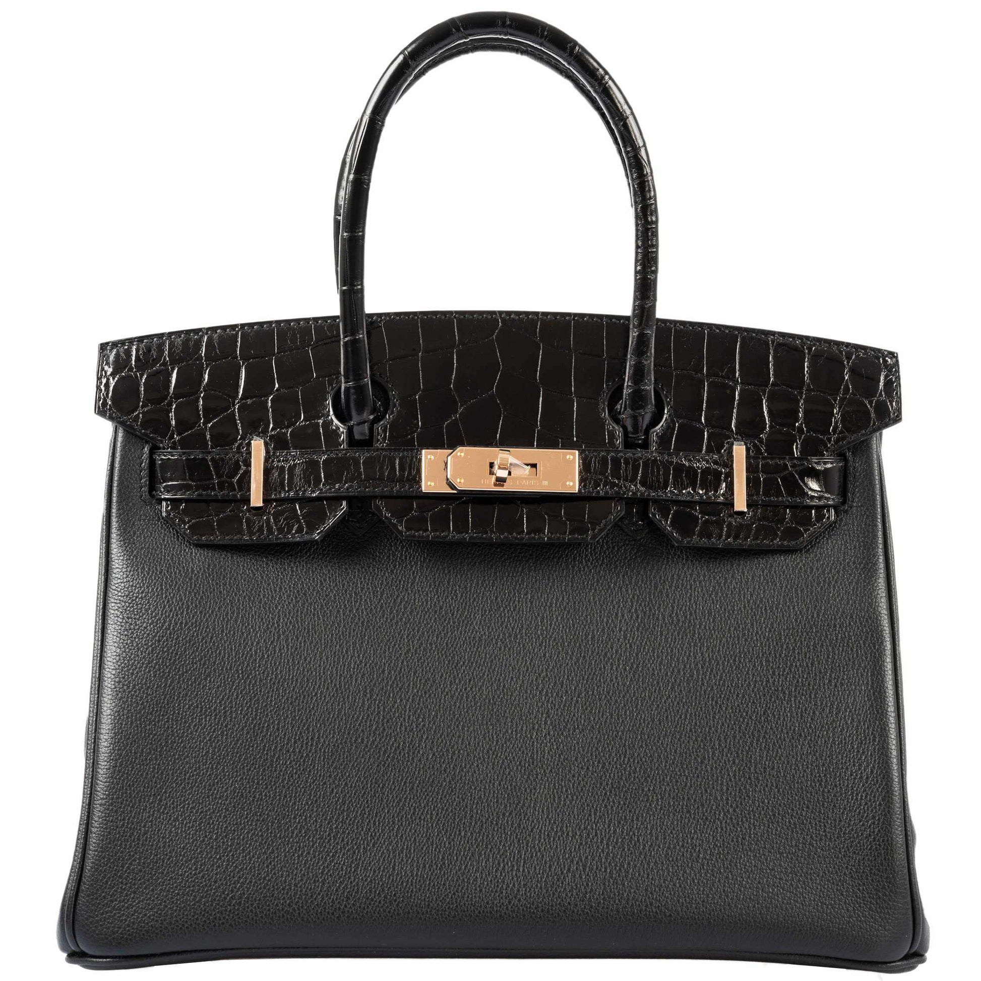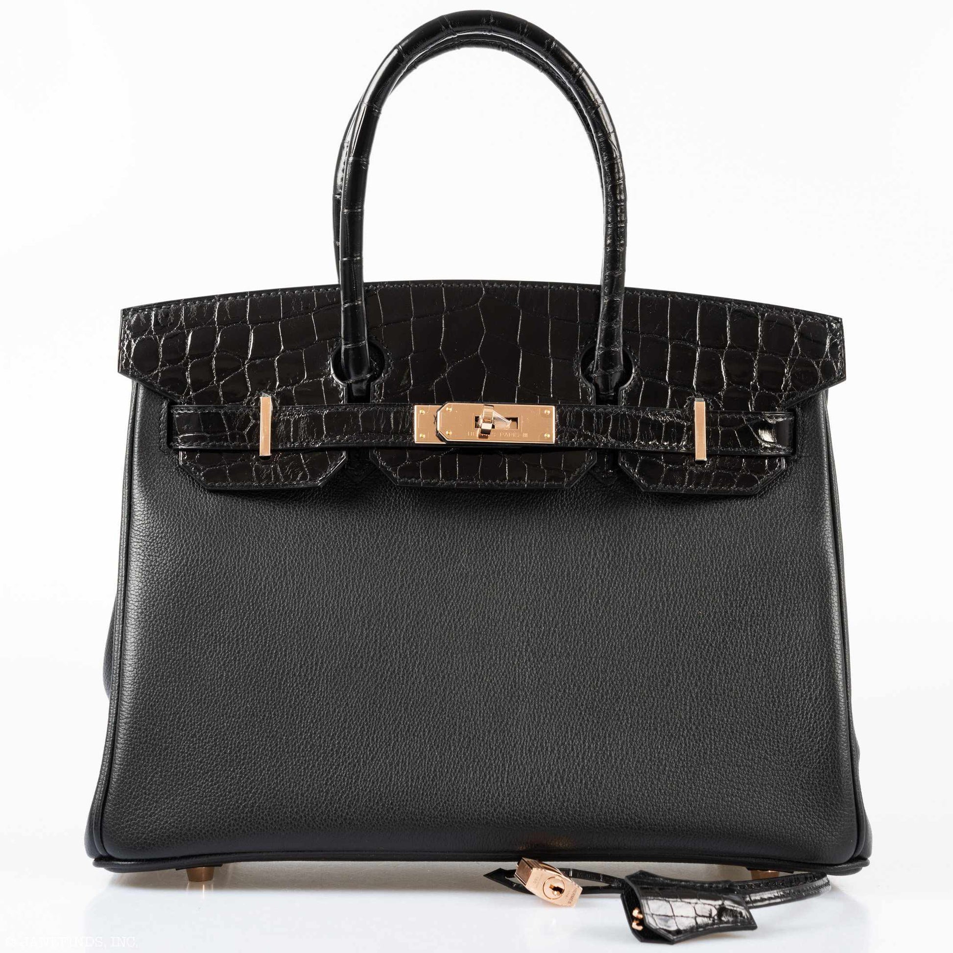 Hermès Birkin Touch 30 Black Novillo & Niloticus Crocodile Rose Gold Hardware