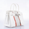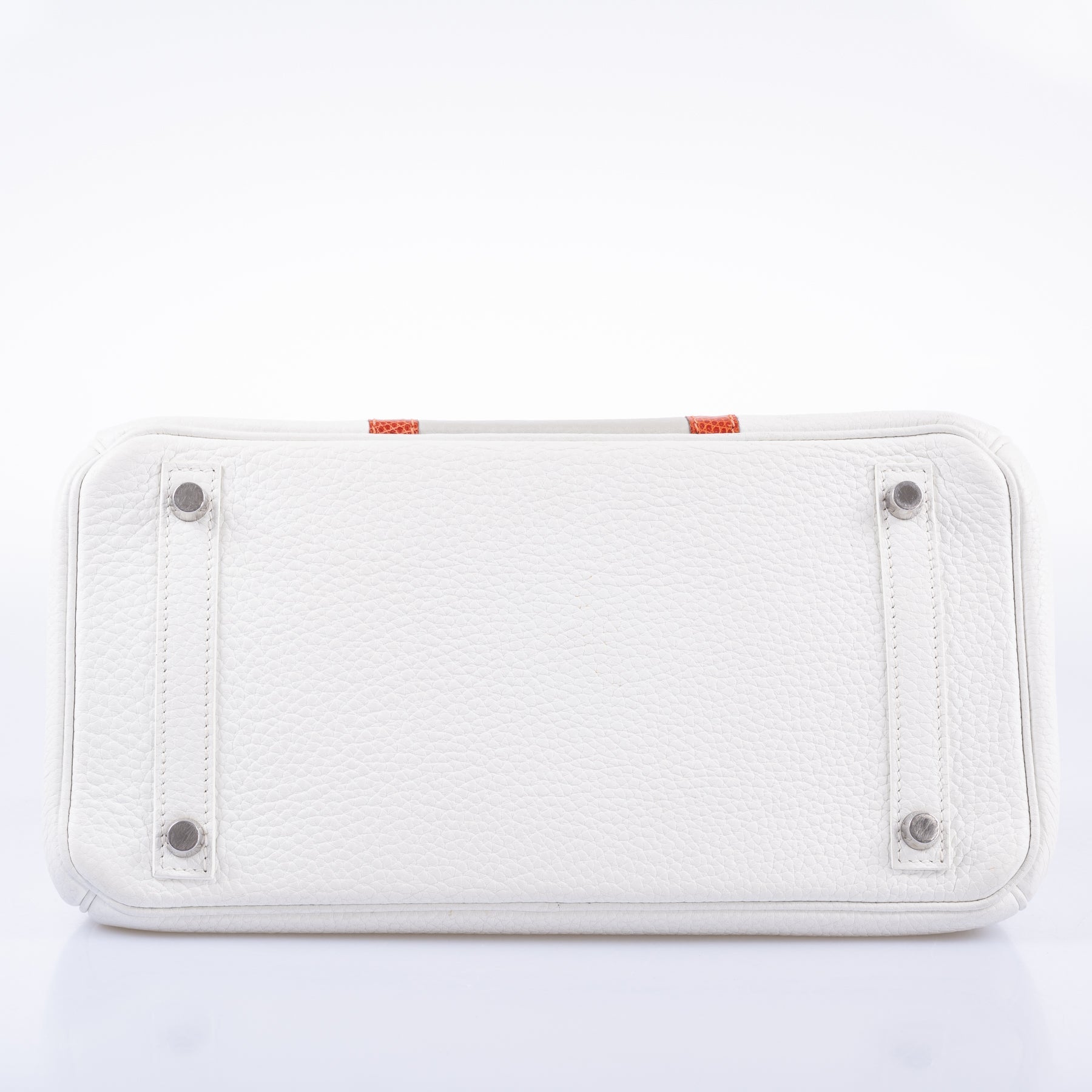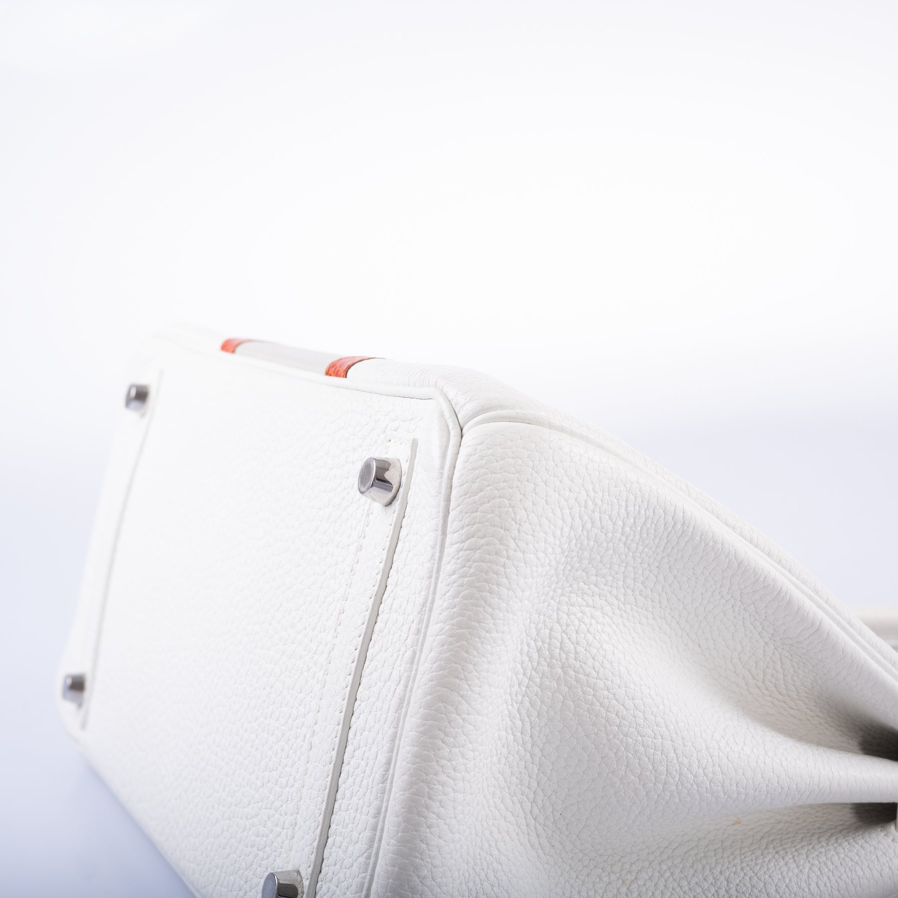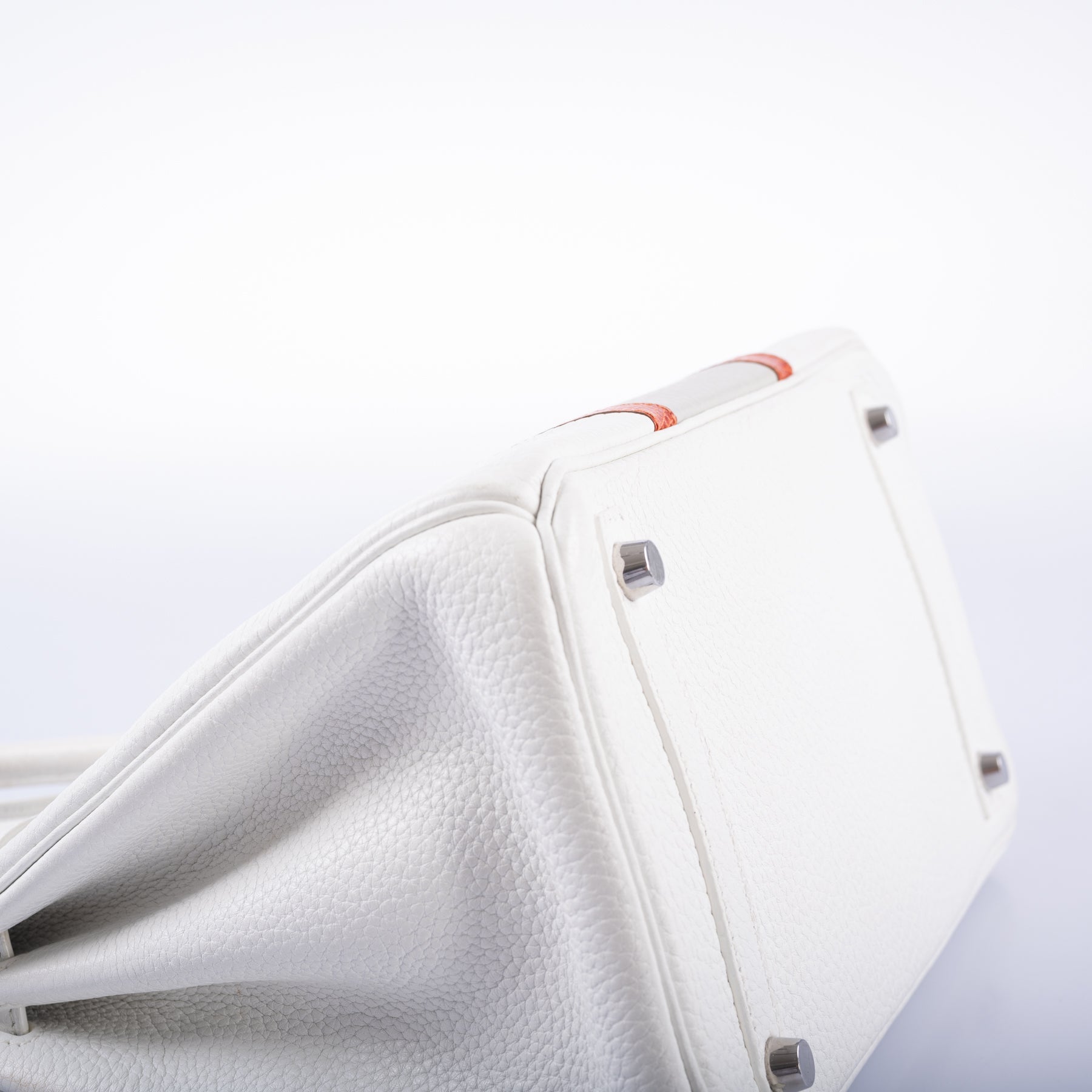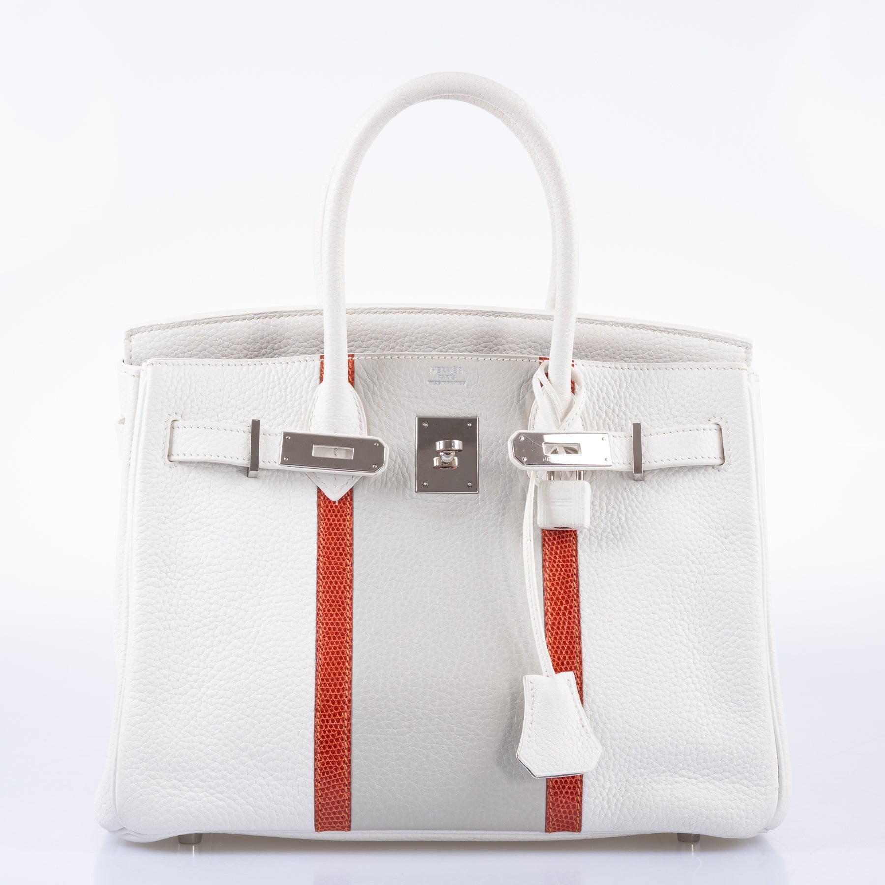 Hermès Club Birkin 30 White, Grey Clemence & Sanguine Lizard Palladium Hardware