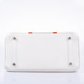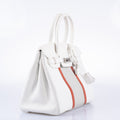 Following the triumph of the Hermès Candy Collection, the introduction of the Club Birkins marked another innovative chapter for the iconic Birkin bag. These Club Birkins elevate the classic design with an audacious incorporation of varying materials, notably featuring a striking stripe down the center. This particular 30cm Club Birkin is an exemplar of such creativity, boasting a distinctive strip of Barenia leather across the top, which intriguingly relocates the Hermès brand stamp to the interior of the bag. The color scheme of this piece is visually captivating. The bold Sanguine hue strikingly contrasts with the solid White and Grey Clemence leather, creating an allure of modern sophistication. The bag's hardware, finished in lustrous Palladium, complements the color palette, adding an air of contemporary elegance. This bag, from the 2011 collection and marked with a Square O, measures 12 inches in width, 6.25 inches in depth, and 9 inches in height, perfectly balancing form and function. Despite its unique composition of Clemence leather and Lizard, it has been kept in excellent condition, preserving its impeccable craftsmanship and aesthetic appeal. This Club Birkin is not just a fashion statement but a collector's piece, representing a bold and innovative chapter in the legacy of Hermès.