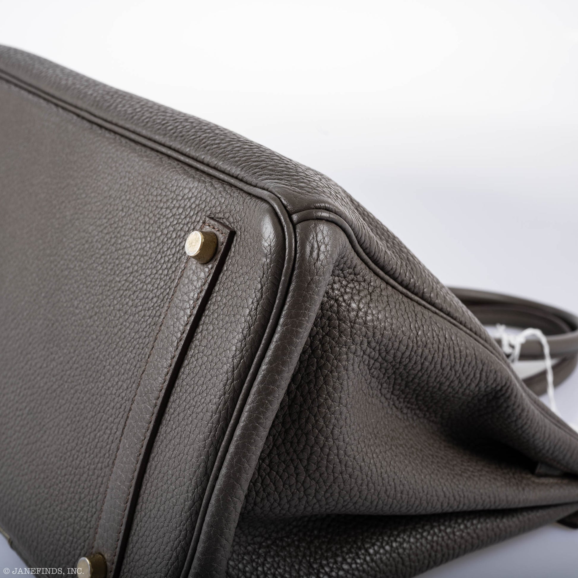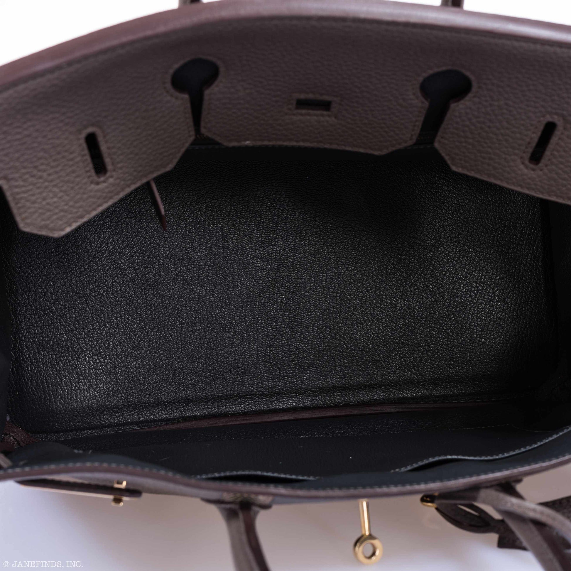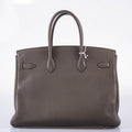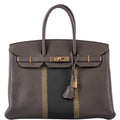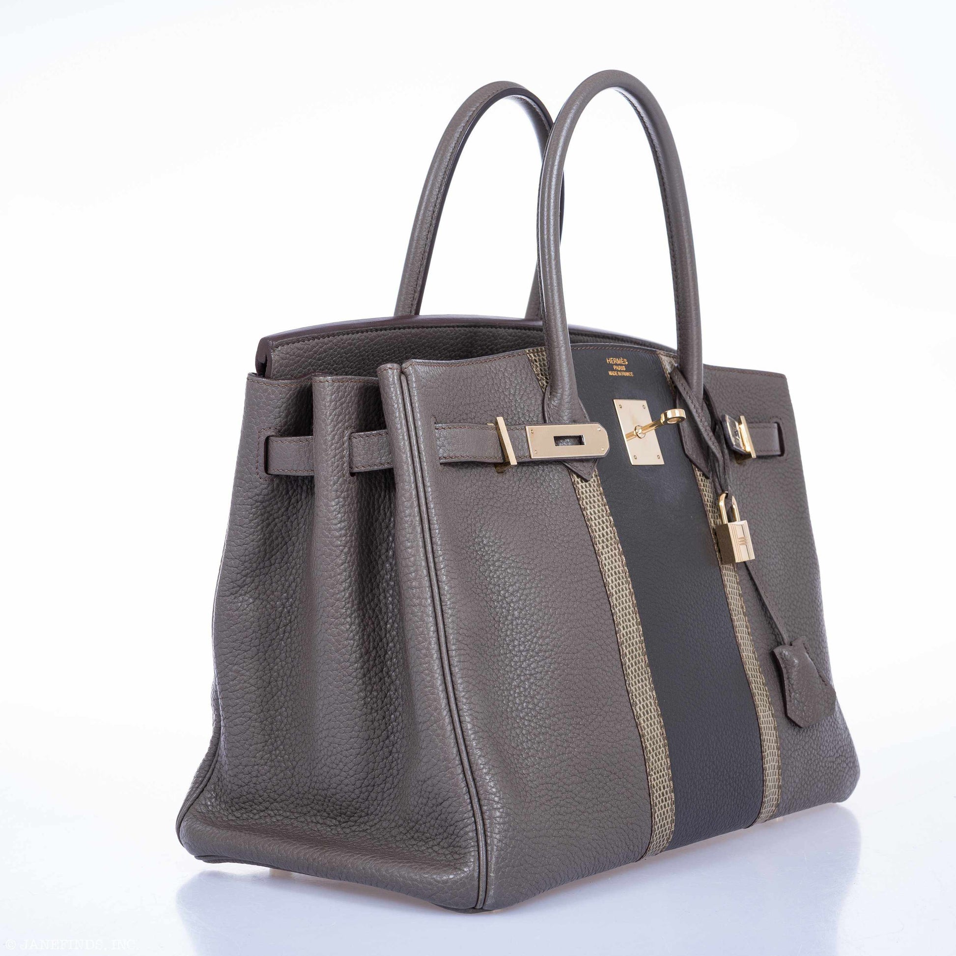 Hermès Club Birkin 35 Tri-Color Etain & Graphite Clemence, Gris Fonce Lizard Permabrass Hardware