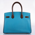 Hermès HSS Birkin 30 Bleu Aztec and Havane Chevre Palladium Hardware