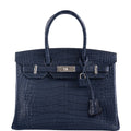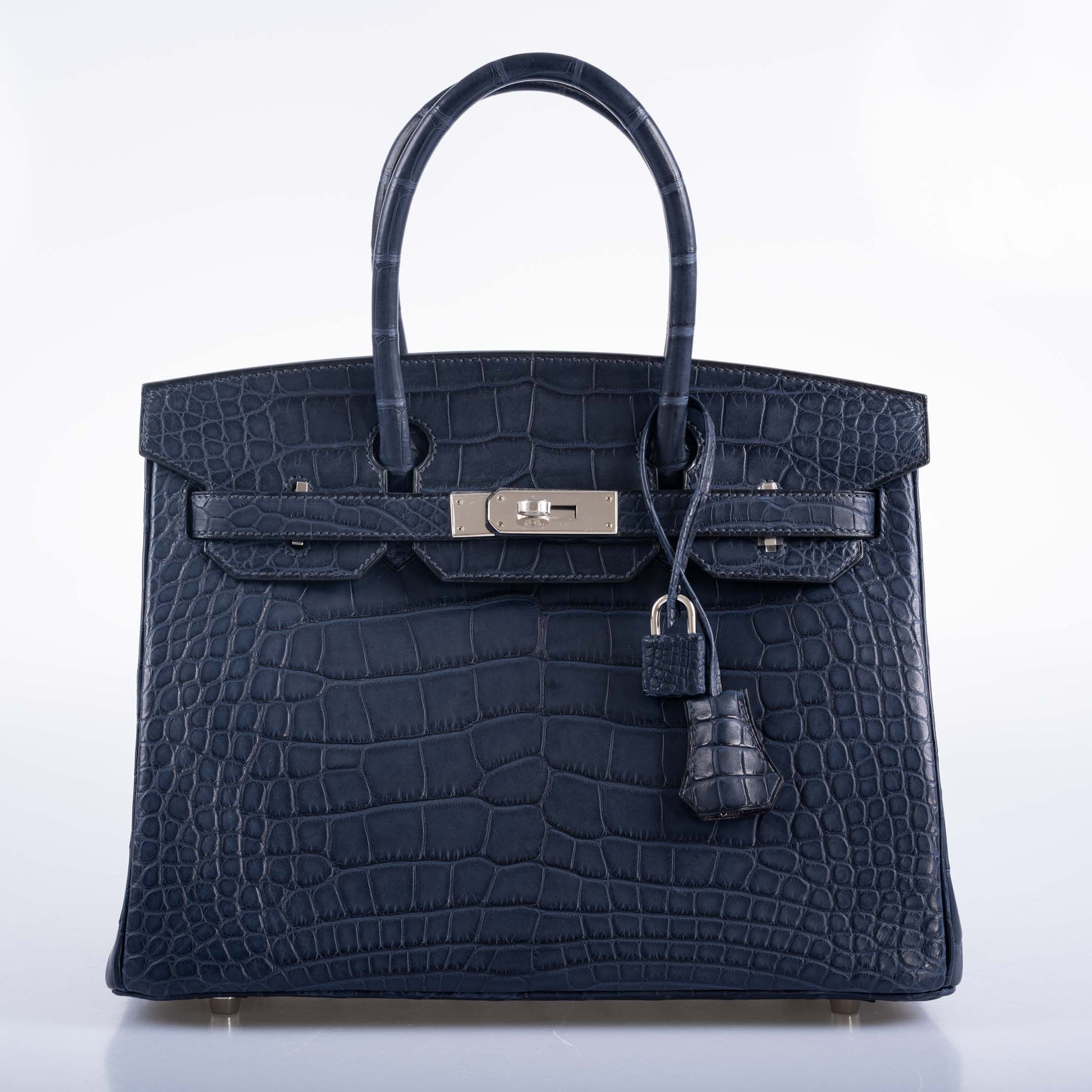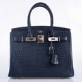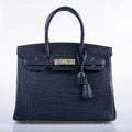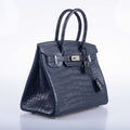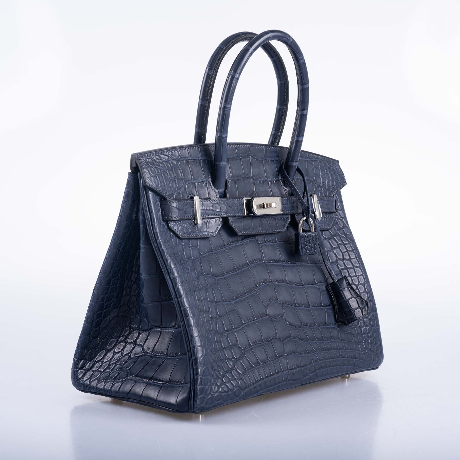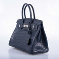 Hermès HSS Birkin 30 Blue Marine Matte Alligator & Cassis Interior with Palladium Hardware