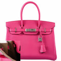 Hermès HSS Birkin 30 Rose Shocking Chevre Leather & Etoupe Palladium Hardware - 2014, R Square