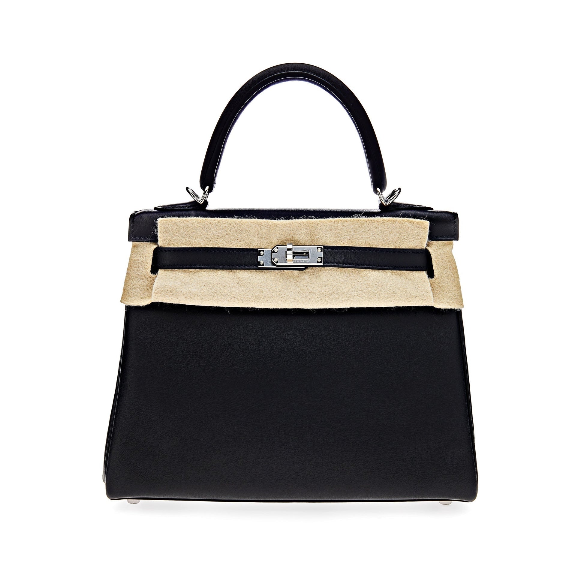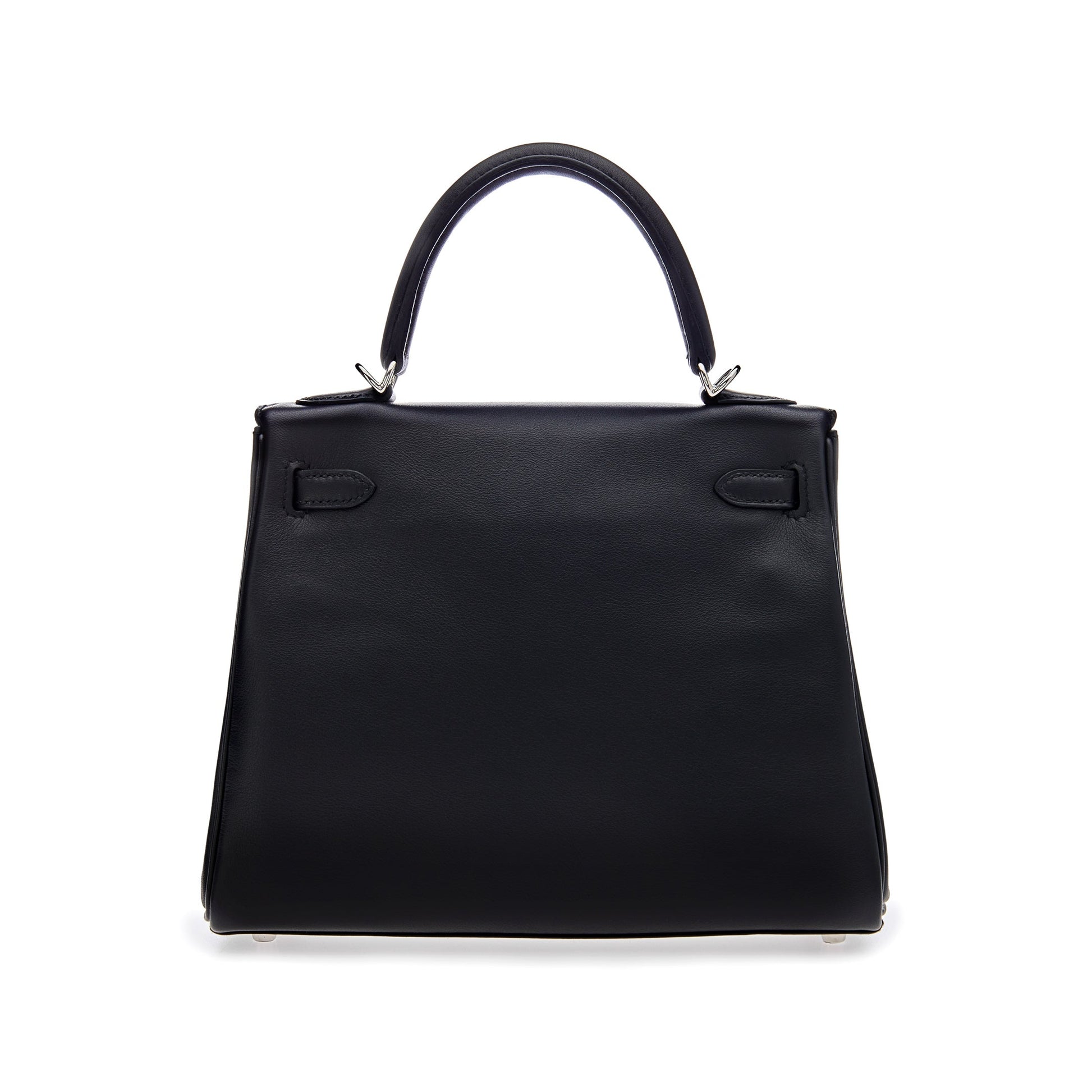 Hermes Kelly II Retourne 25 Veau Swift 89 Noir, Palladium Hardware