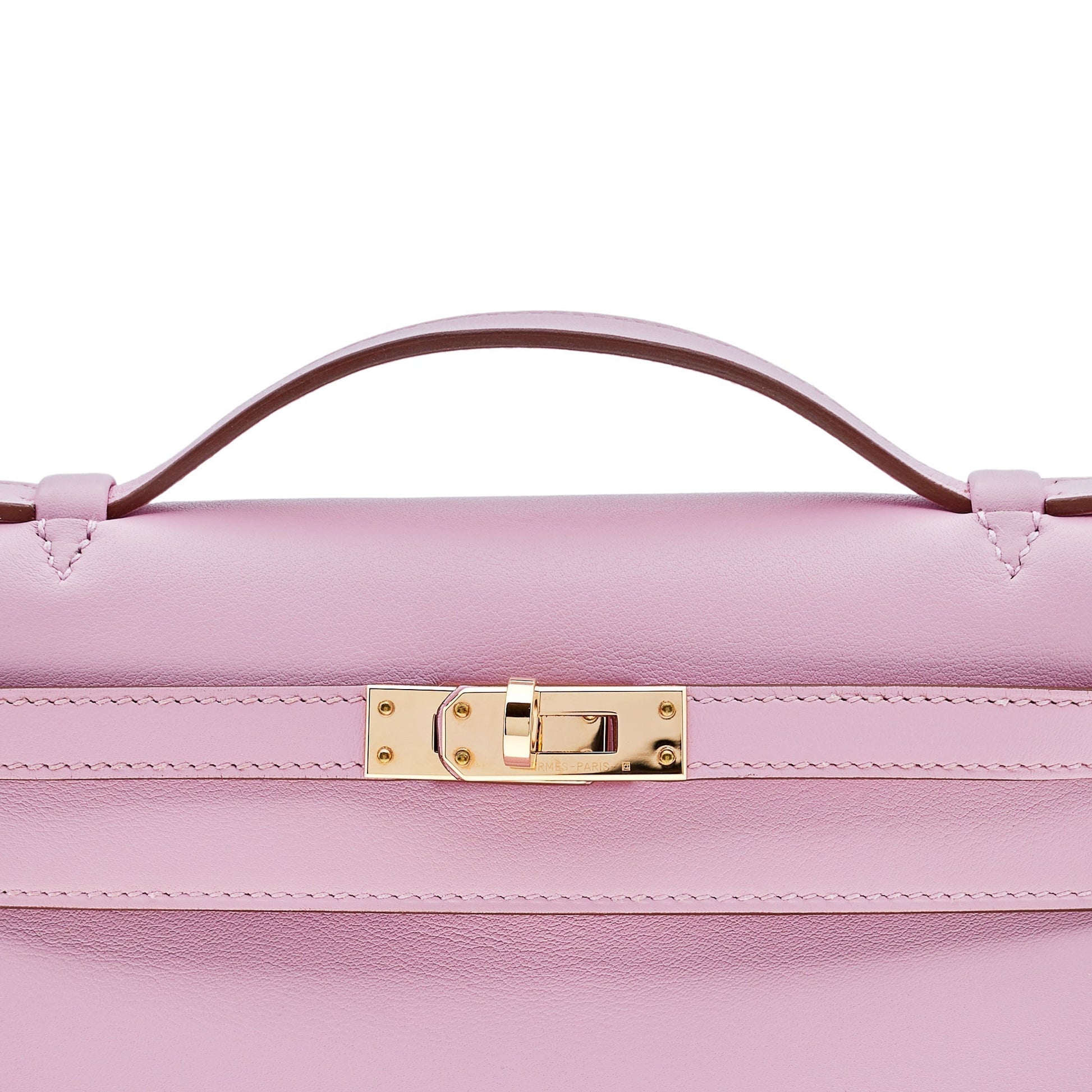 Hermes Kelly Pochette Mini Clutch X9 Mauve Sylvestre Swift Leather, Rose Gold Hardware