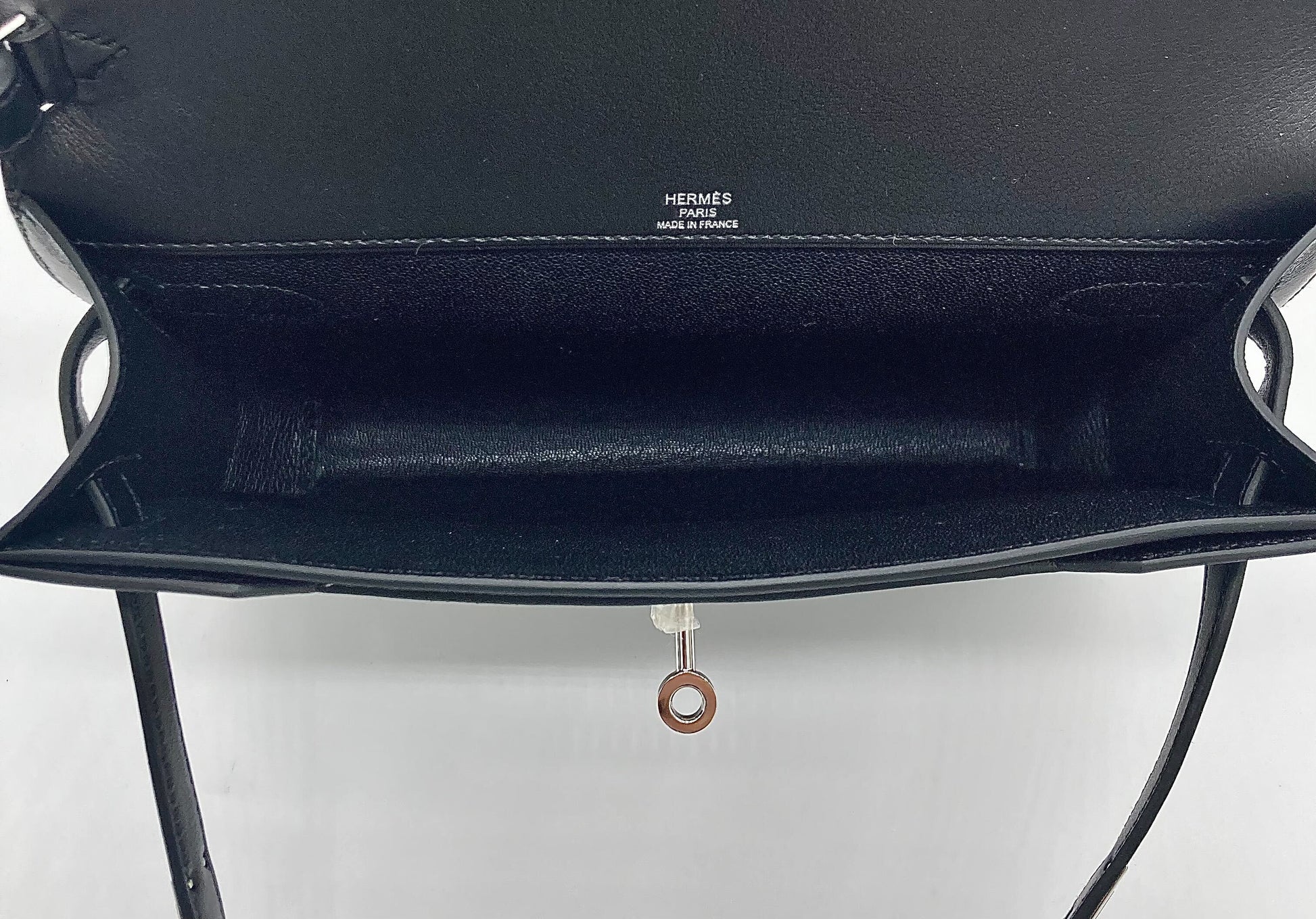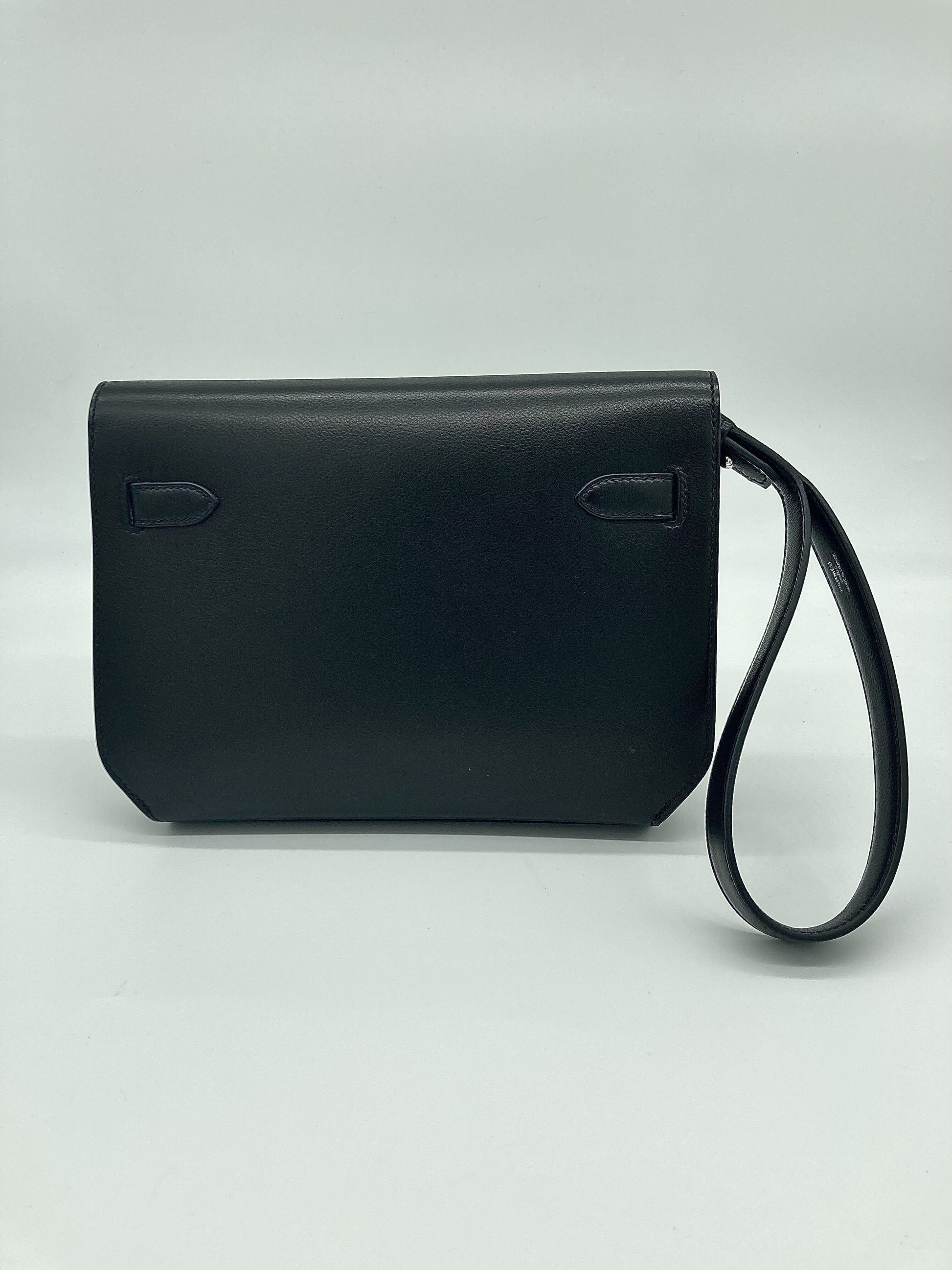 Hermes Kelly Depeches 25 Noir Veau Evergrain Clutch Palladium Hardware
