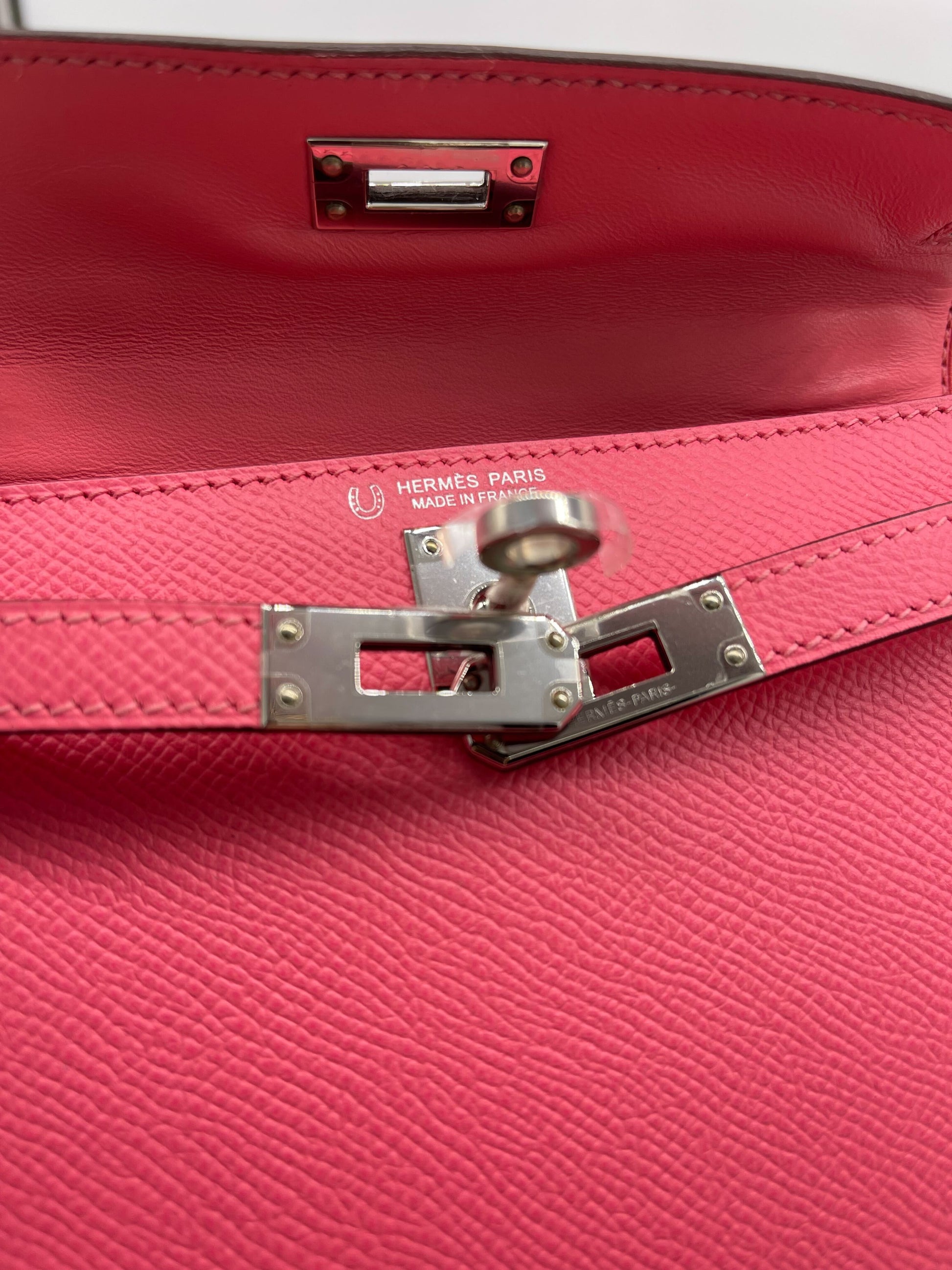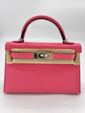 Hermes Mini Kelly II Sellier Rose Azalee Epsom Leather Palladium Hardware