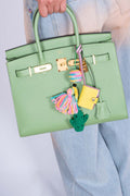 A modern marvel of luxury, this Hermes Sellier Birkin 30 crafted in Hermes Vert Criquet captures the essence of timeless elegance and contemporary flair. The Sellier iteration of the iconic Birkin boasts a more structured and pronounced edge stitching, emphasizing the impeccable craftsmanship Hermes is celebrated for. The choice of Epsom leather, renowned for its fine-grained texture and ability to retain shape over time, further accentuates this bag's distinguished silhouette. Hermes Vert Criquet, a vibrant and refreshing shade of green, is exquisitely juxtaposed with the lustrous Gold hardware, adding a touch of warmth to its lively hue. Store Fresh from 2019, this bag is not only a testament to enduring style but also to the spirit of the current fashion zeitgeist.