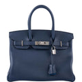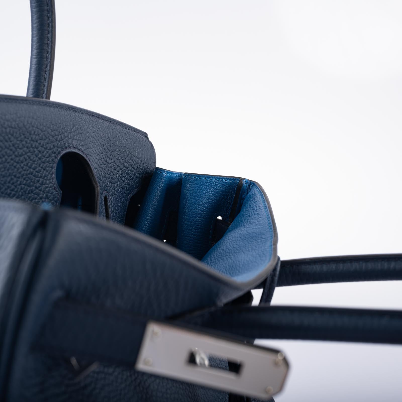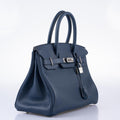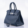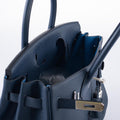 Hermès Verso Birkin 30 Blue de Prusse and Mykonos Clemence Leather Palladium Hardware