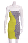 Herve Leger Grey & Yellow Colorblock Bandage Dress SZ XS