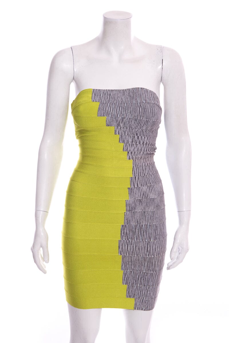 Herve Leger Grey & Yellow Colorblock Bandage Dress. This item is in good condition.