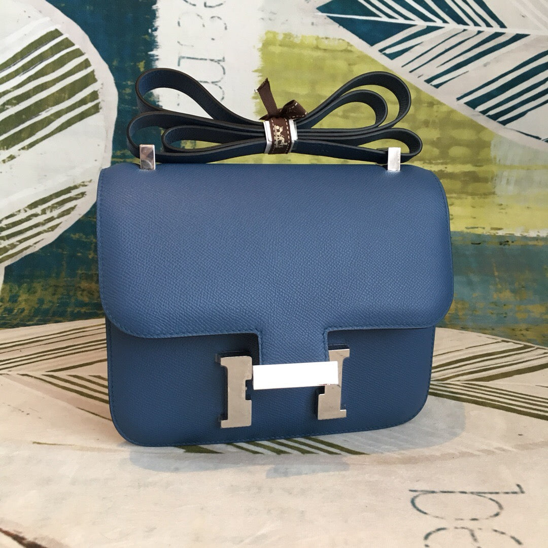 HM Constance 18 Epsom Navy Blue For Womtlm Silver Toned Hardware, Womtlm’s Handbags, Shoulder Bags 7.1in/18cm