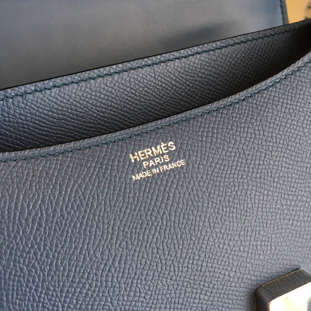 HRMS Constance 18 Epsom Navy Blue For Womtlm Silver Toned Hardware, Womtlm’s Handbags, Shoulder Bags 7.1in/18cm