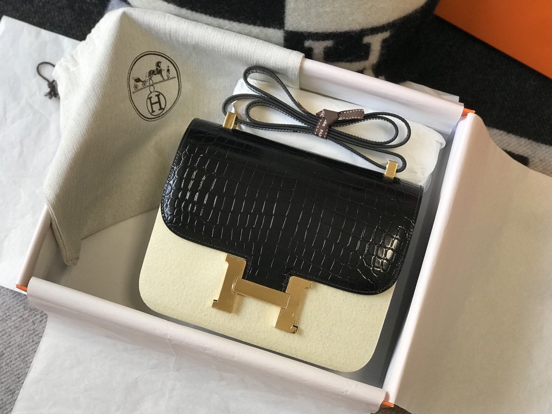 HM Constance 23 Pattern Crocodile Black For Women, Handbags, Shoulder Bag 9in/23cm