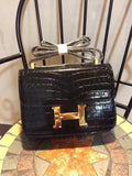 HM Constance 24 Pattern Crocodile Black For Women, Handbags, Shoulder Bag 9.4in/24cm