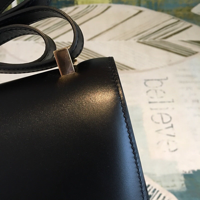 HM Constance 24 Swift Black For Womtlm Gold Toned Hardware, Handbags, Shoulder Bags 9.5in/24cm
